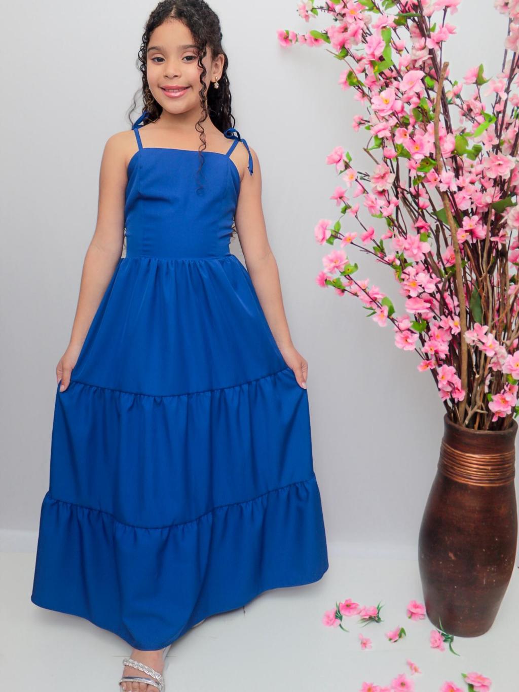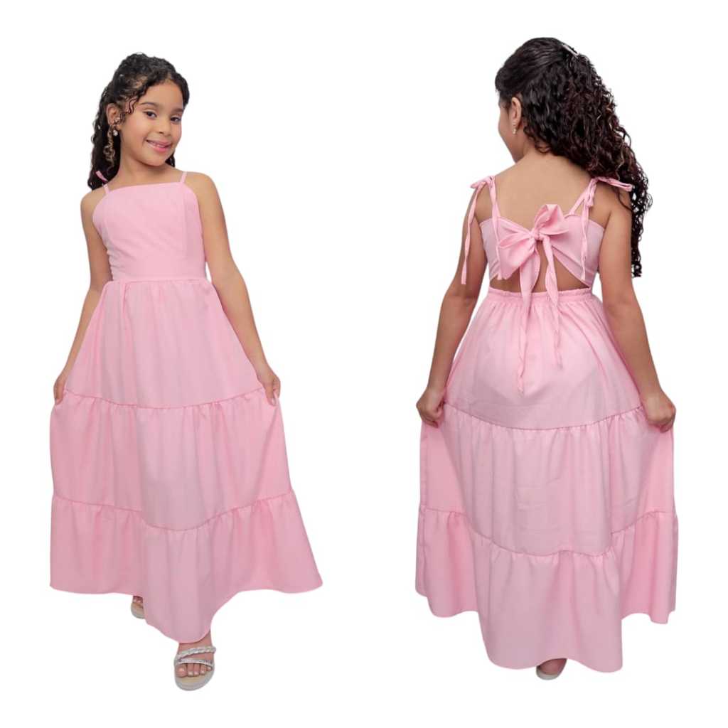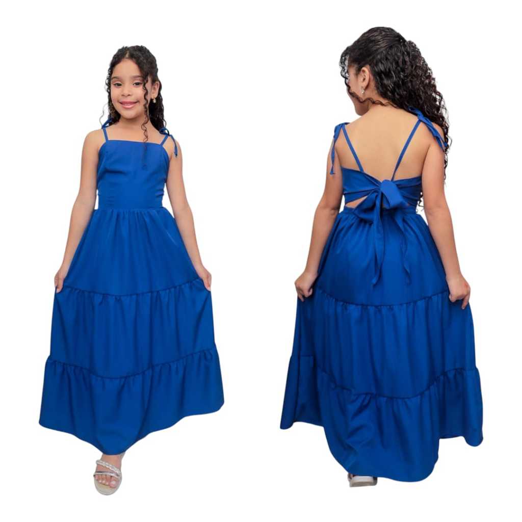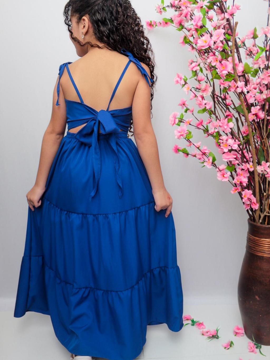 Vestido longo liso laço três Marias juvenil