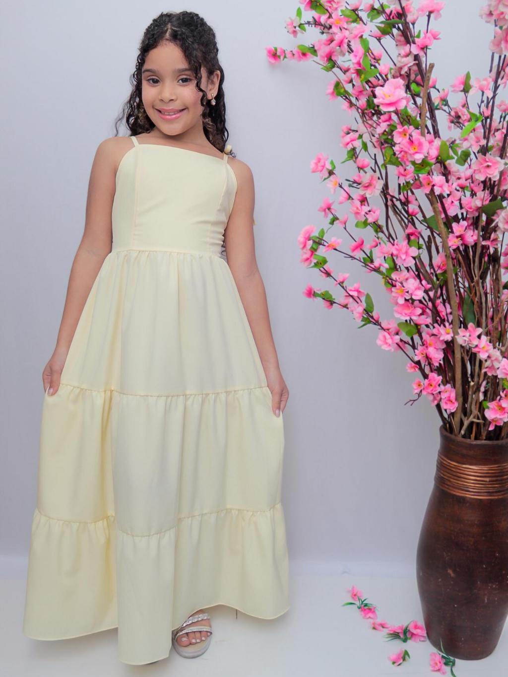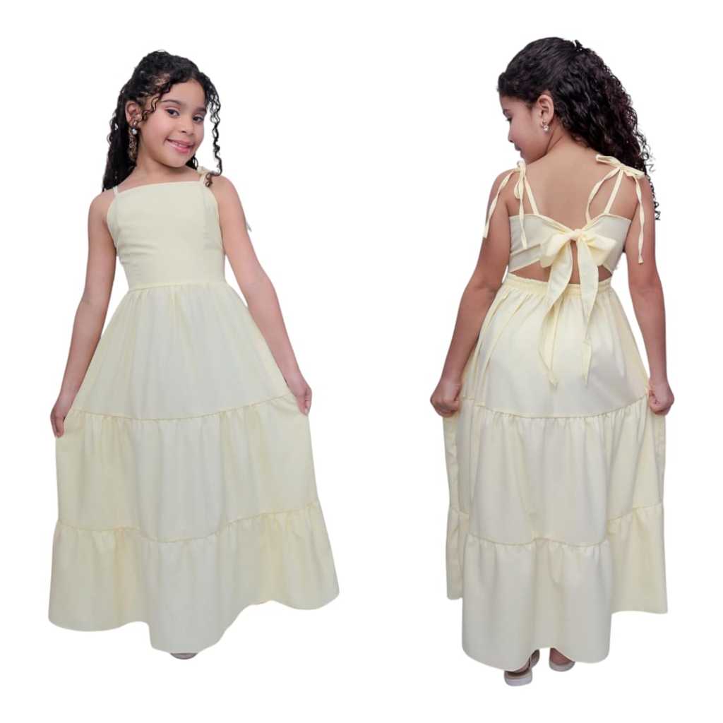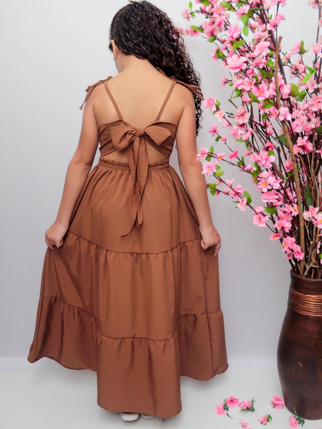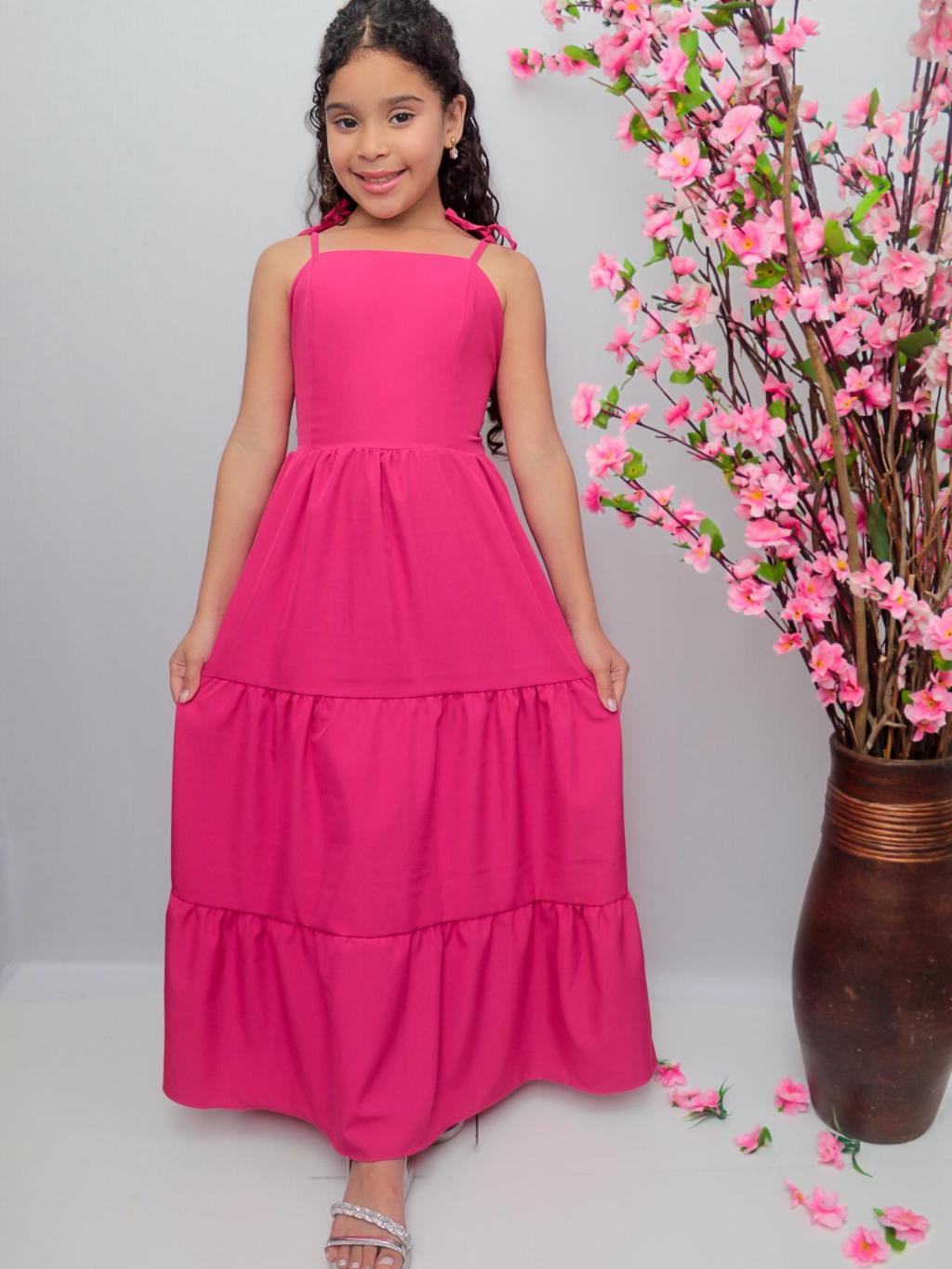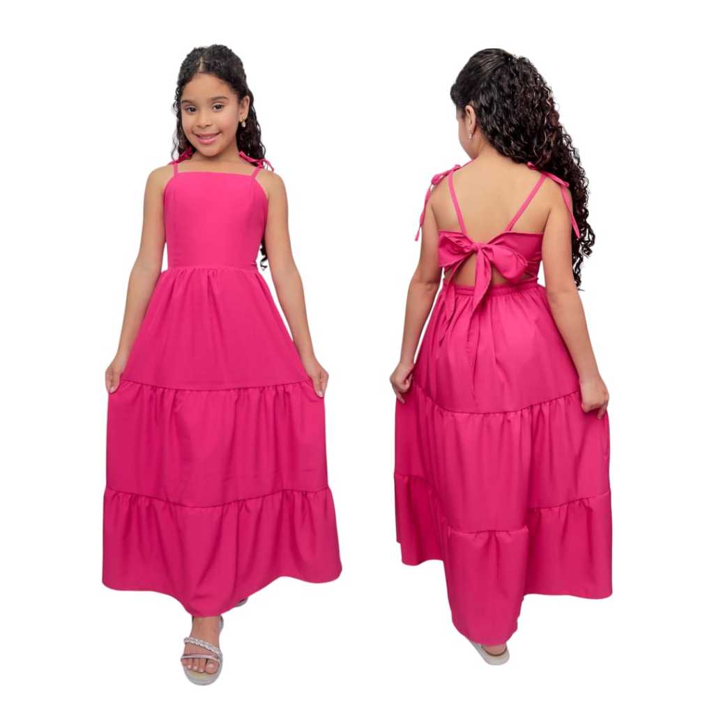 Vestido longo liso laço três Marias juvenil