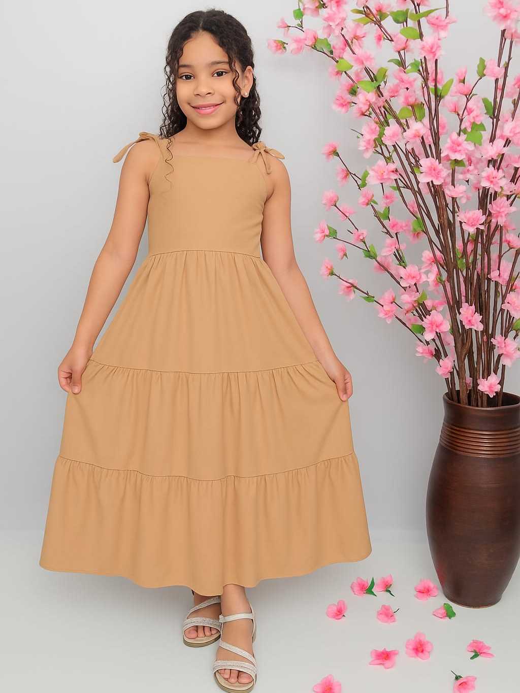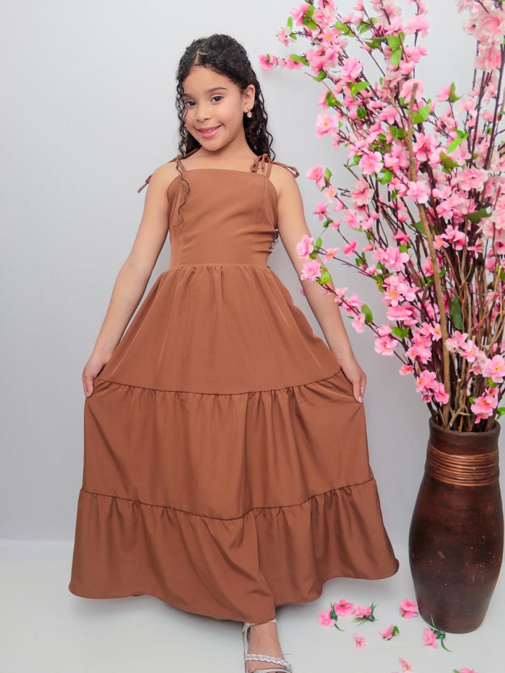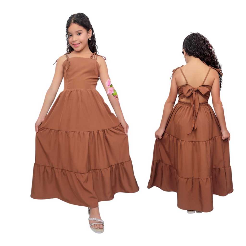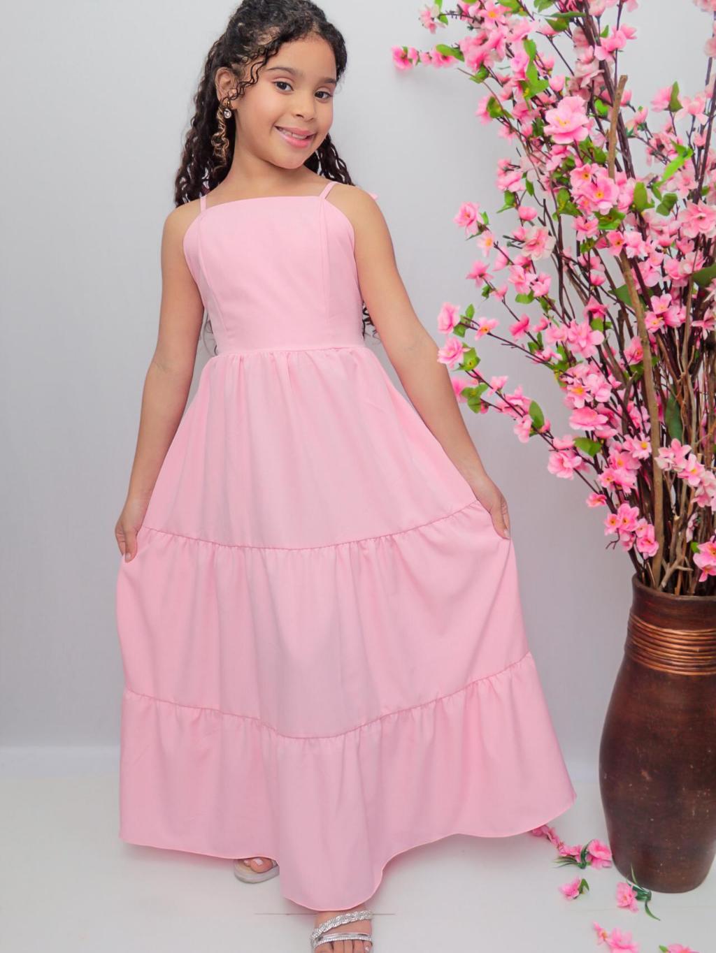 Vestido longo liso laço três Marias juvenil