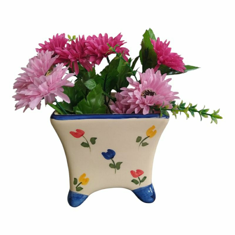 Vasinho Vaso Cachepô Cachepot Tulipa/ Cravo Com Pé de Cerâmica Jardim e Sala