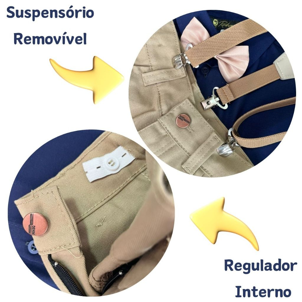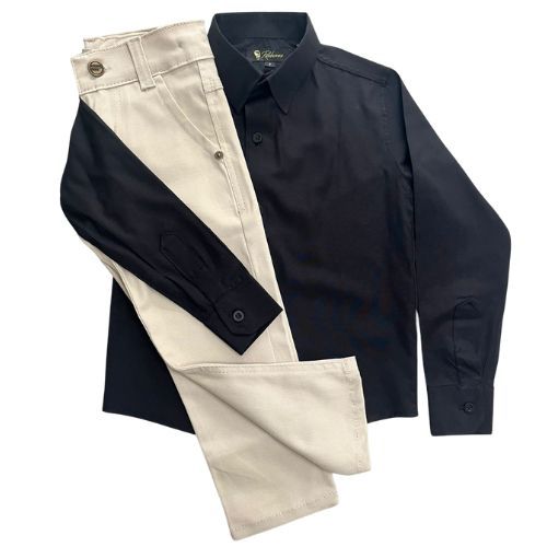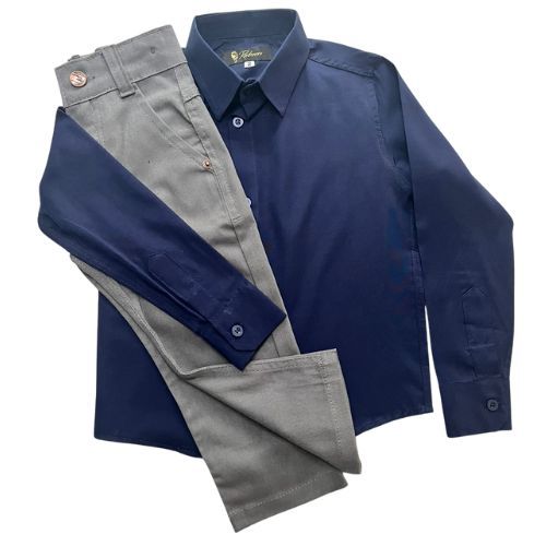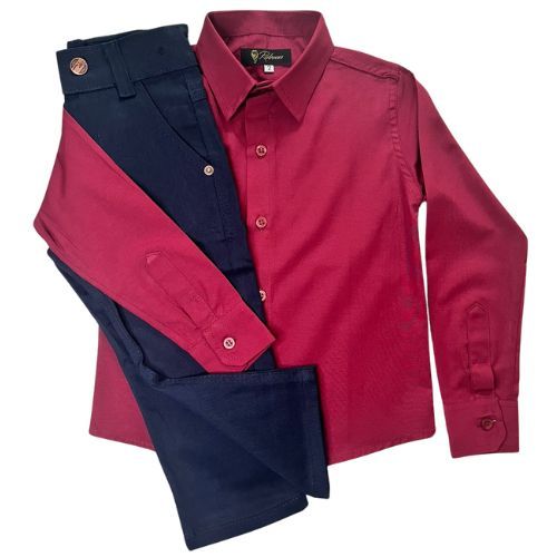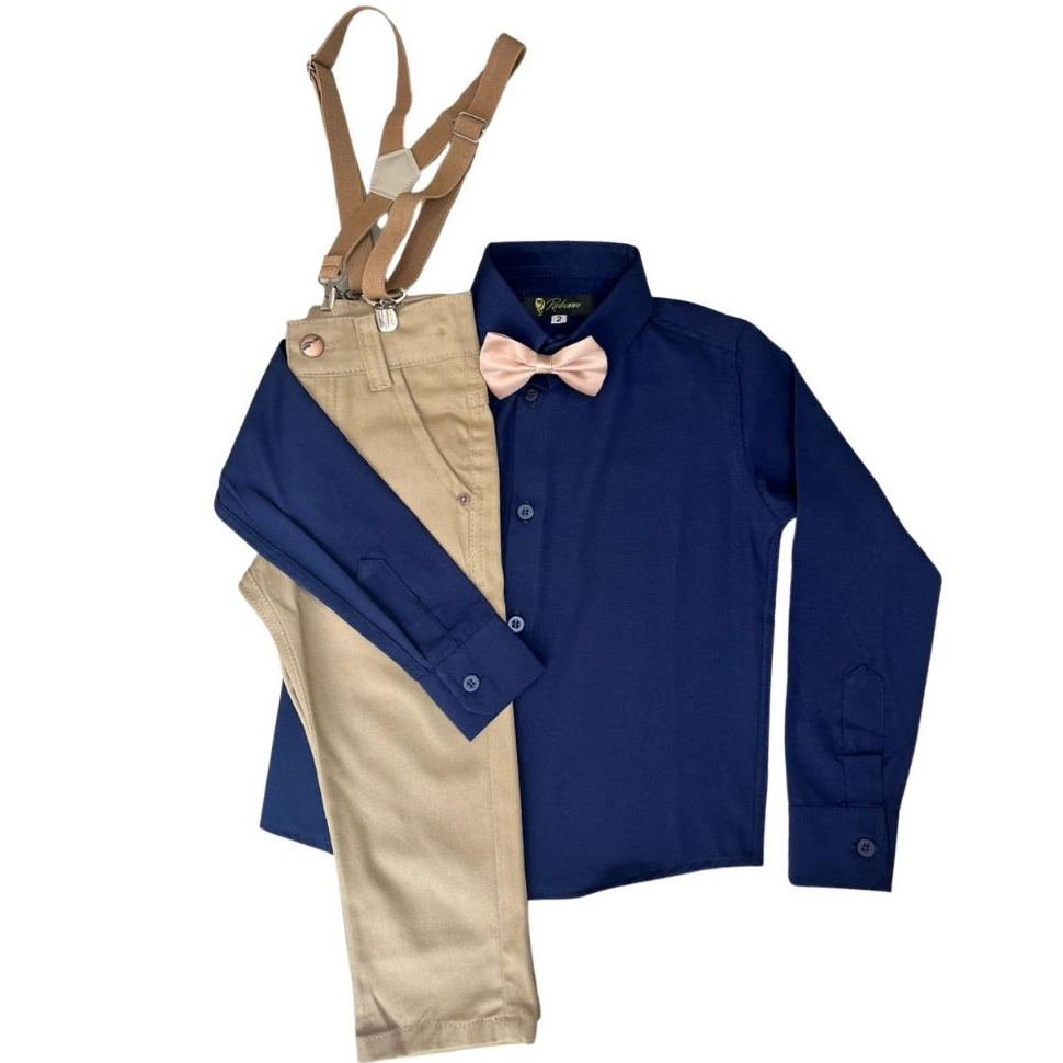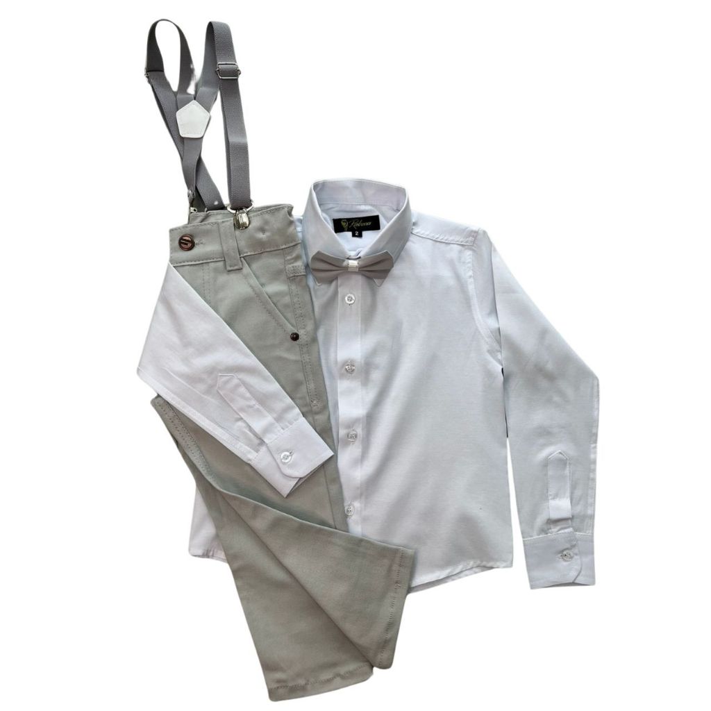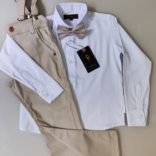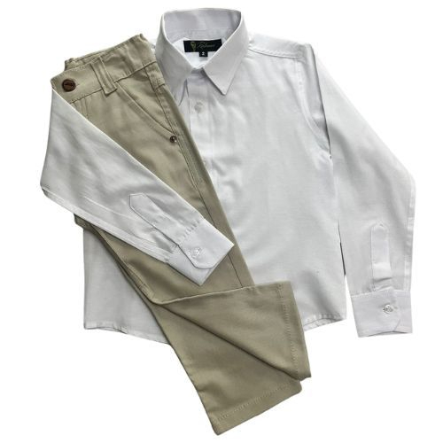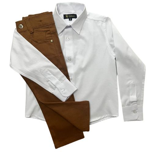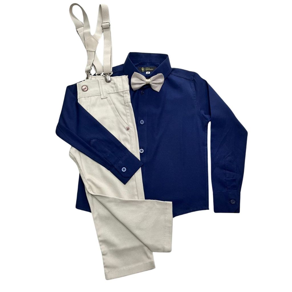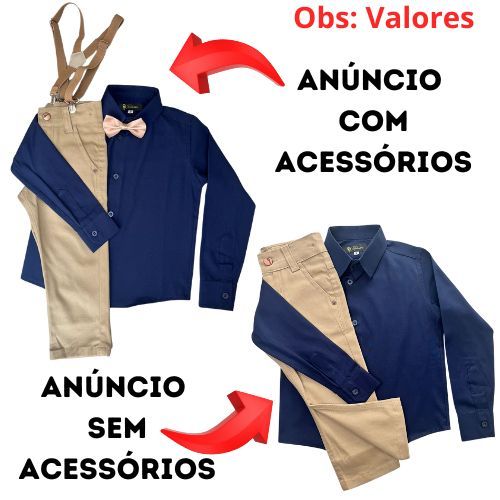 Conjunto batizado liso/Com acessórios/Sem acessórios/Calça, Camisa, fardamento, manga longa.