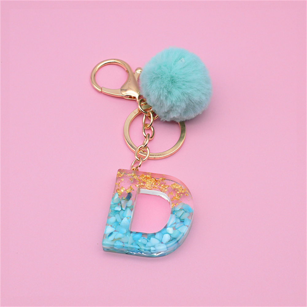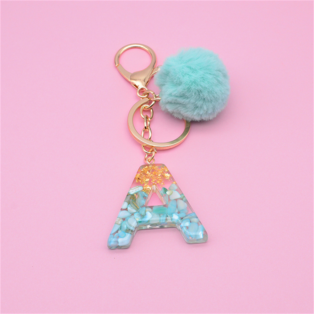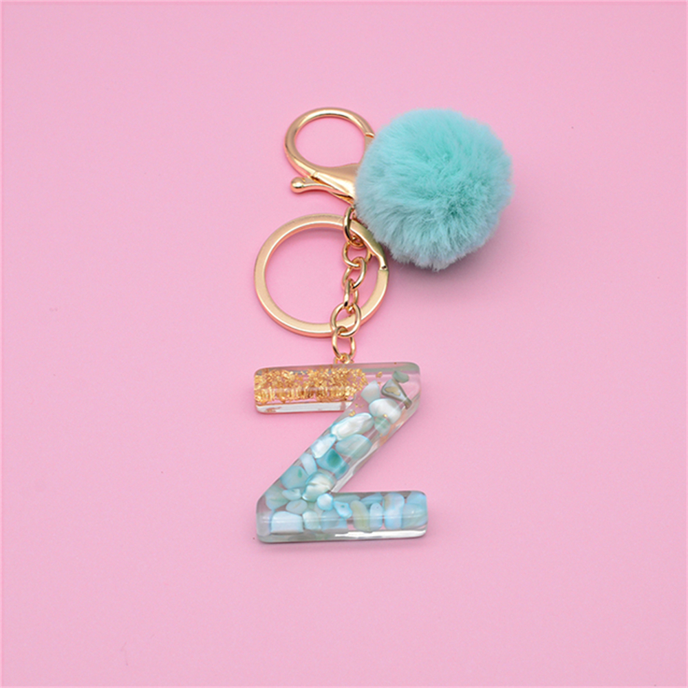 Chaveiro Bola Fofa Pele Pompom Verde 26 Letras Resina Bolsa Encantadora Para Mulher Enfeites Acessórios Presente