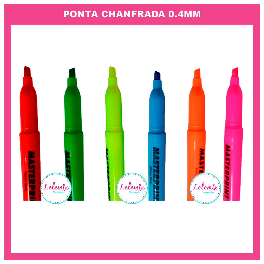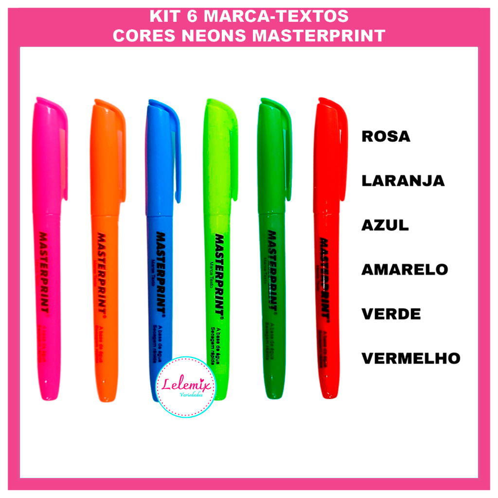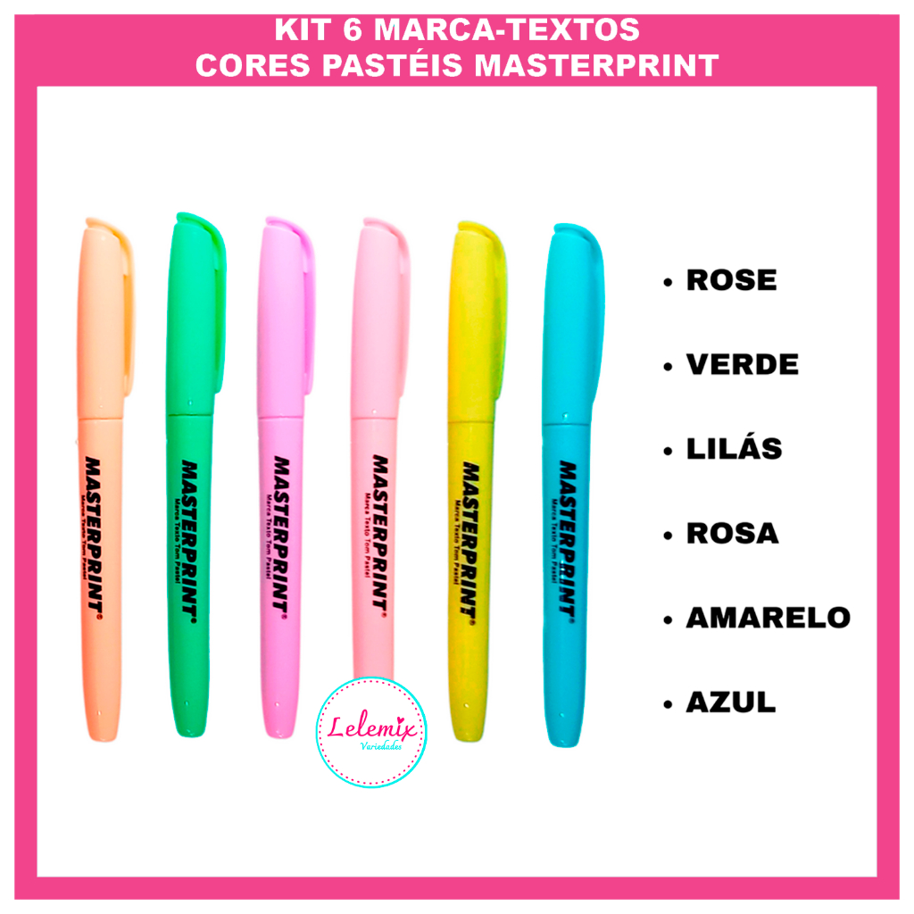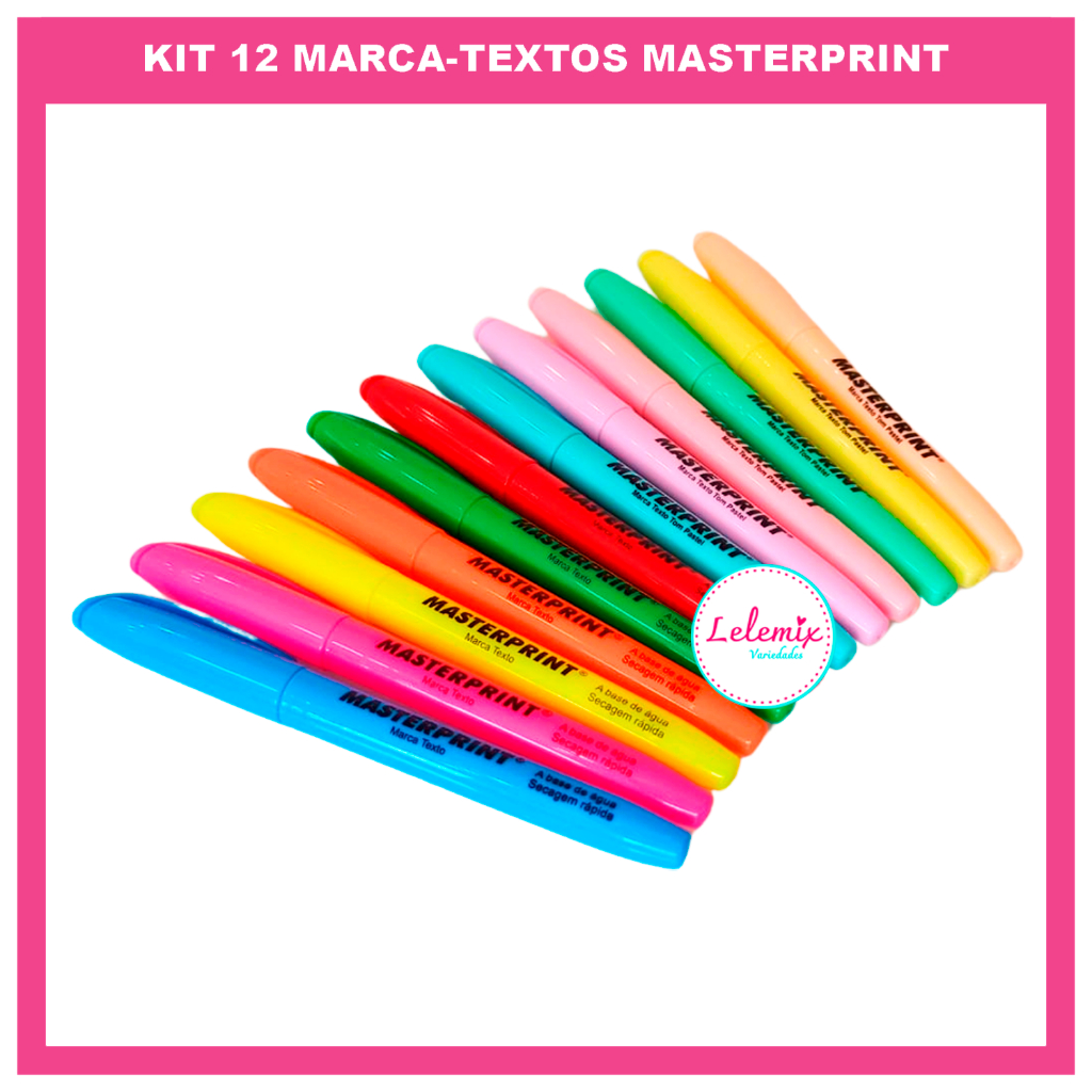 Kit 12 canetas canetinhas Marca Texto coloridas Masterprint (6 Neon + 6 pastel) Material escolar