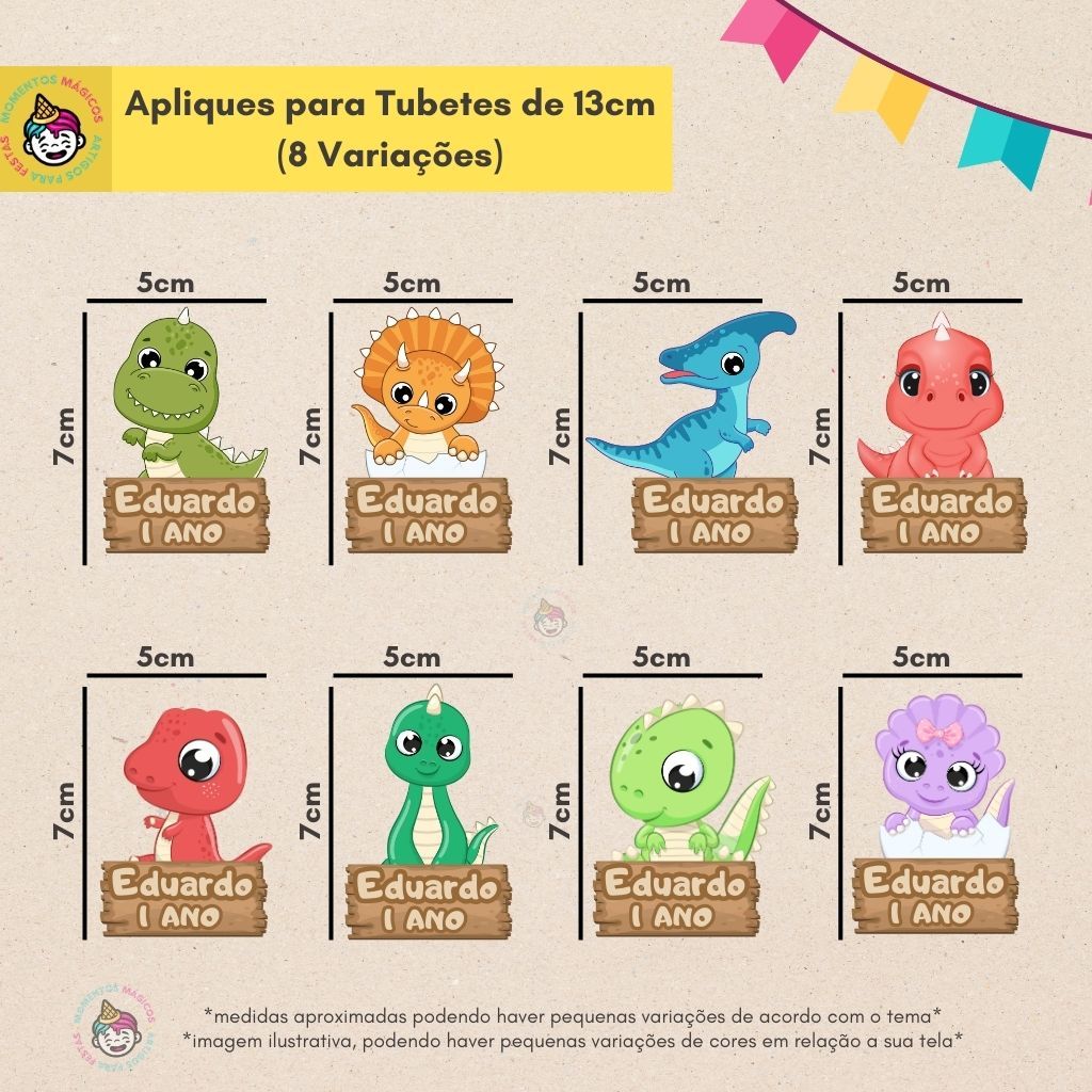 Tubetes + Apliques Dino Baby Dinossauro Lembrancinhas Personalizados Nome Idade Aniversário Festa