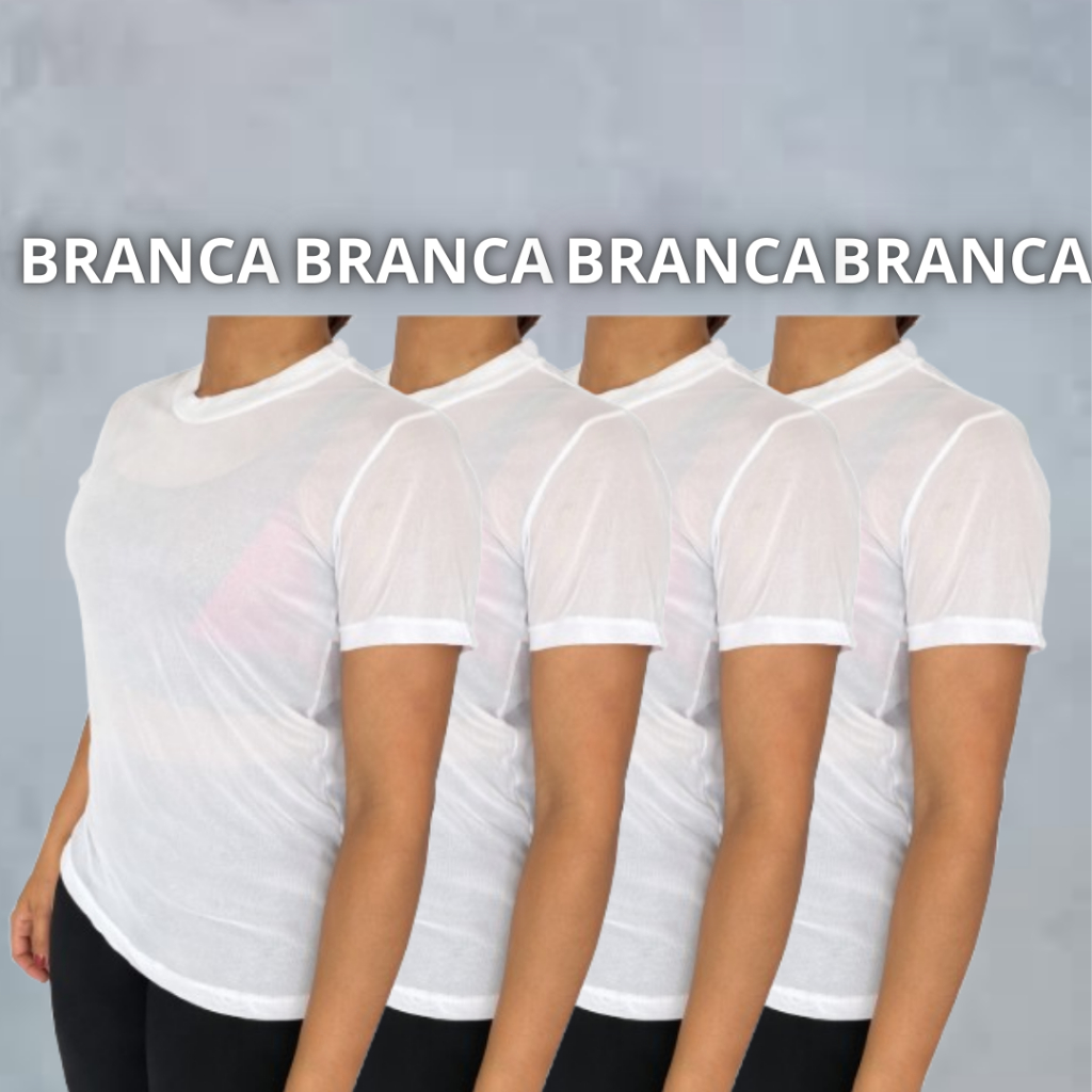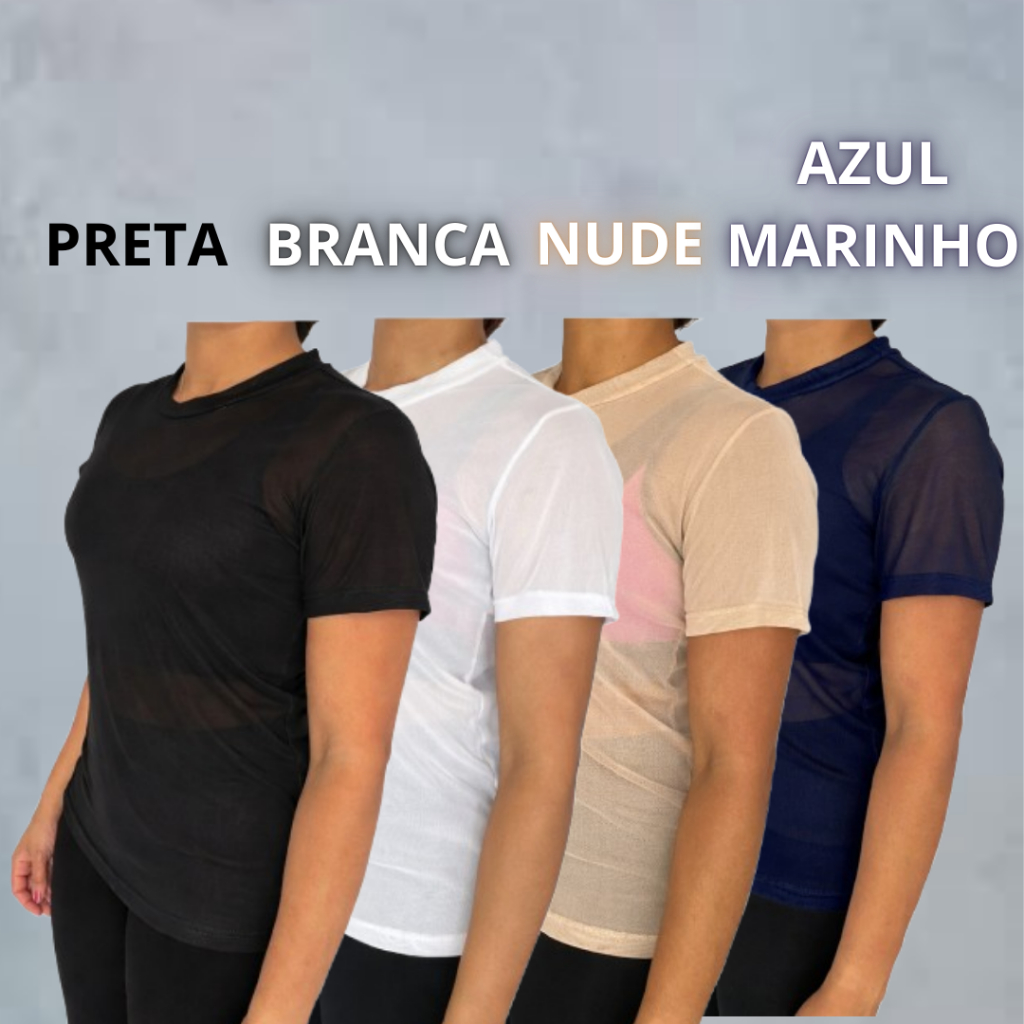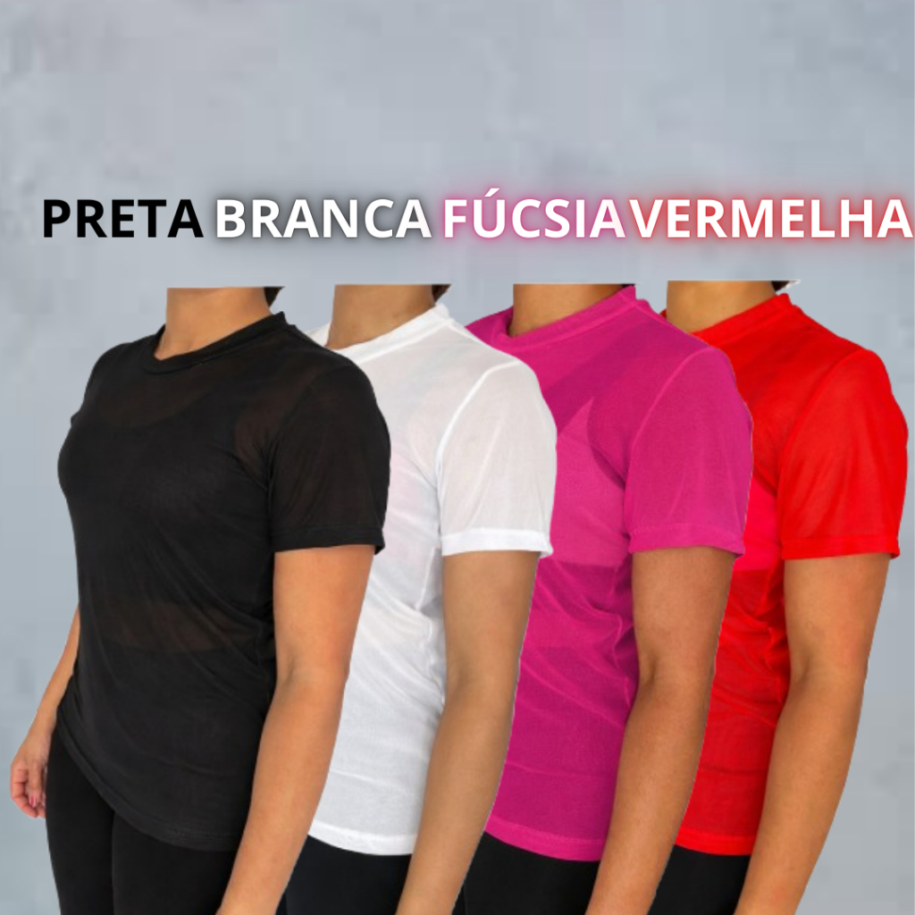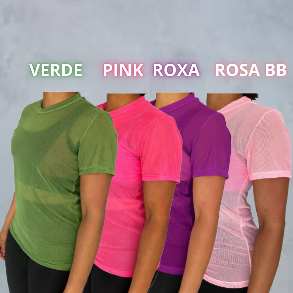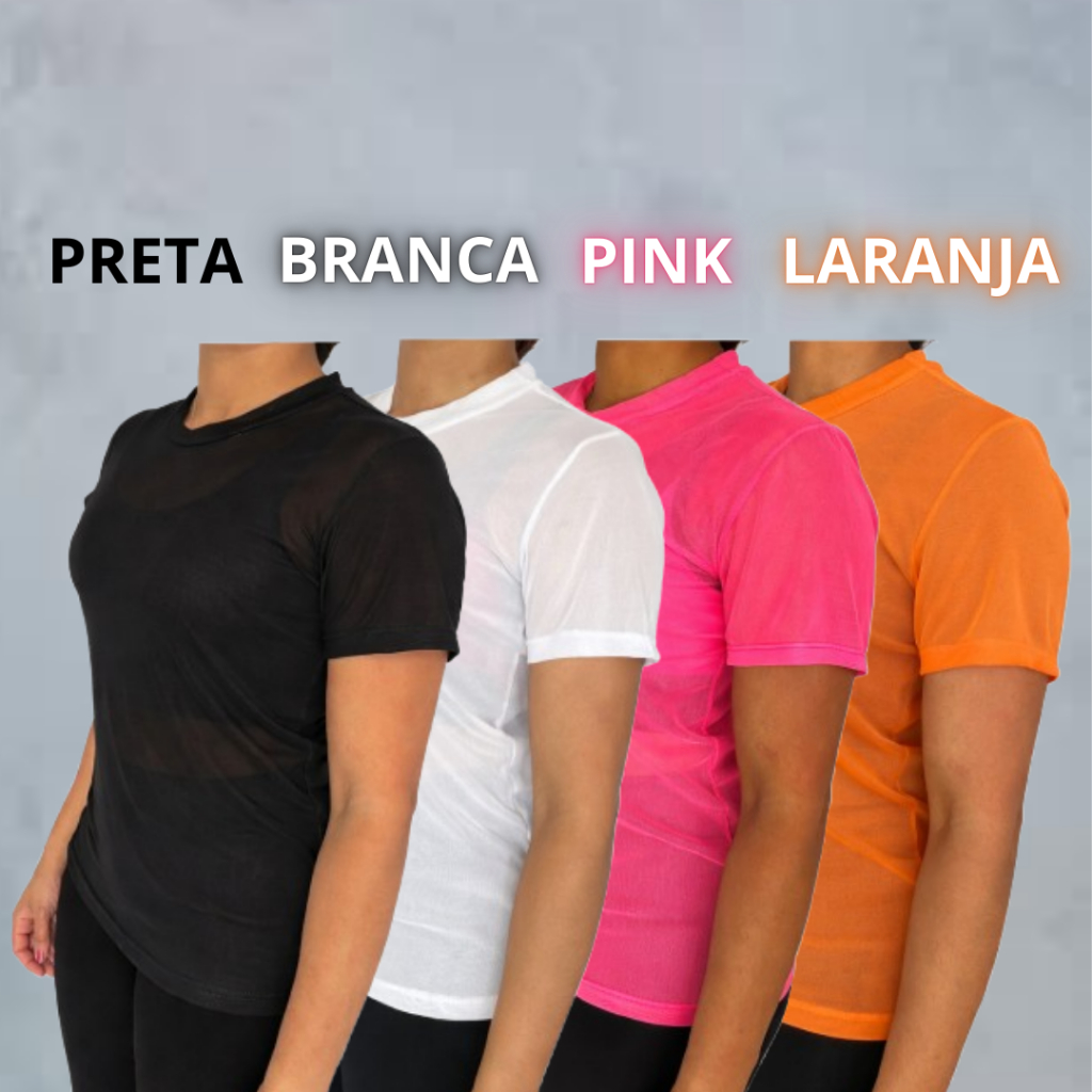 Kit 04 Blusas De Tule Camiseta Feminina Transparente Com Elastano Academia Fitnes