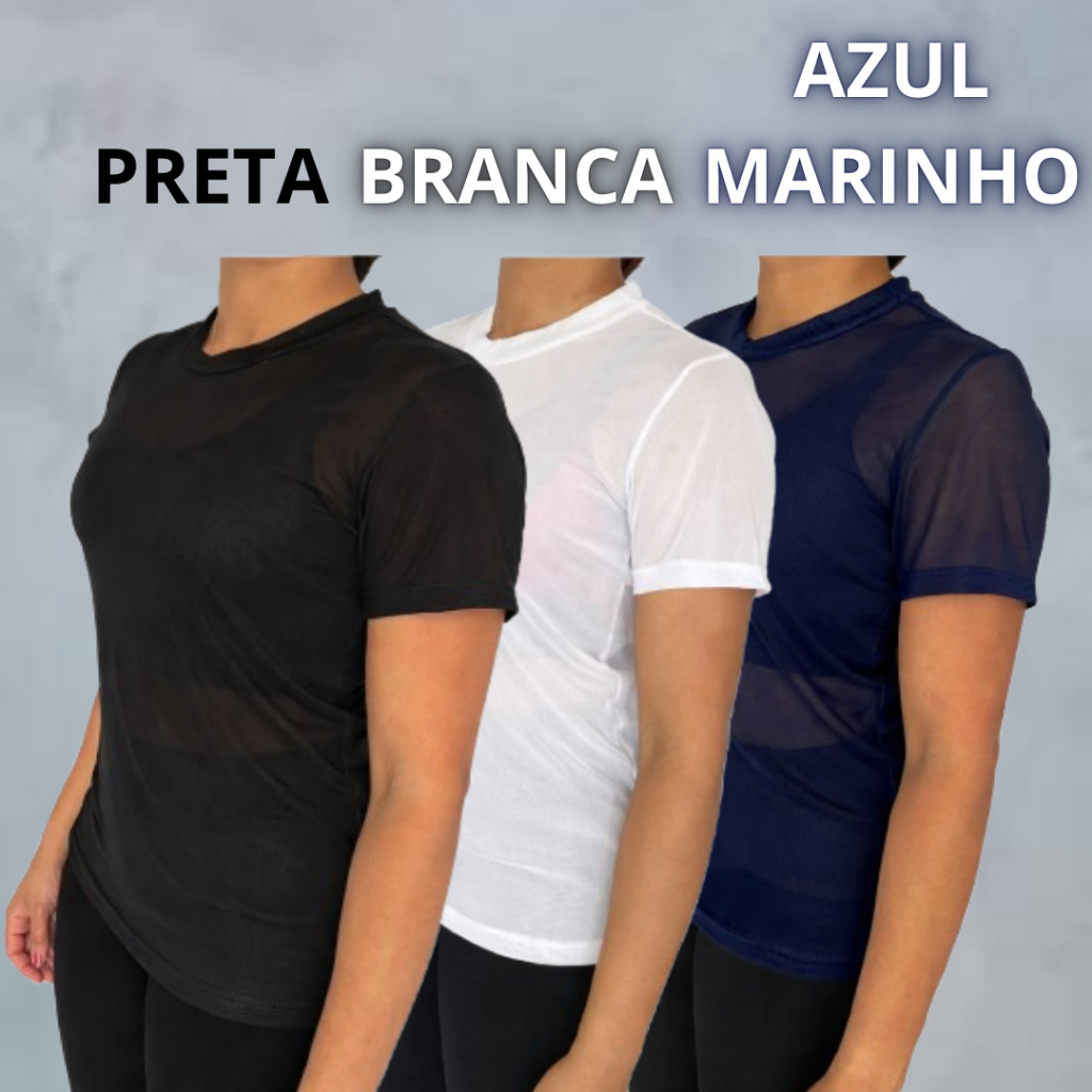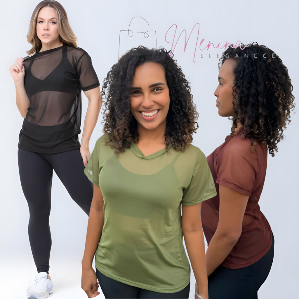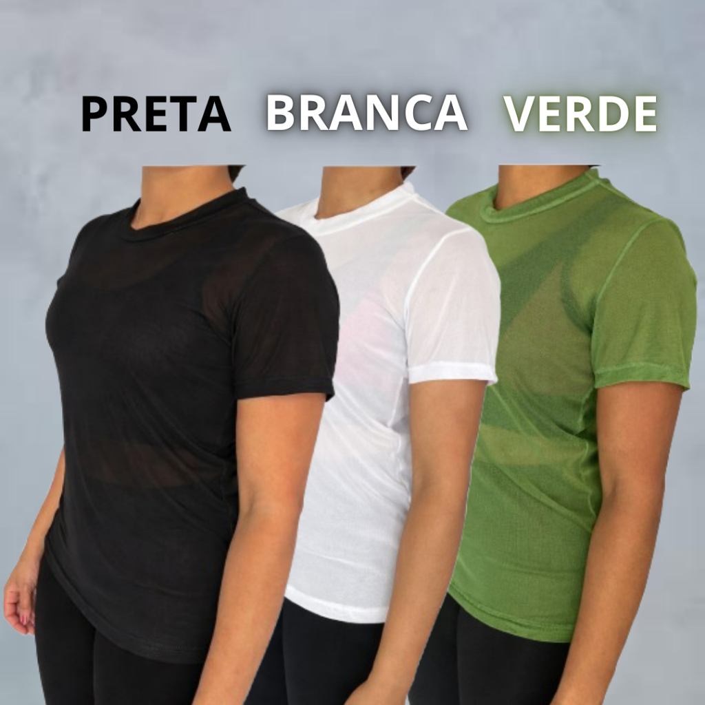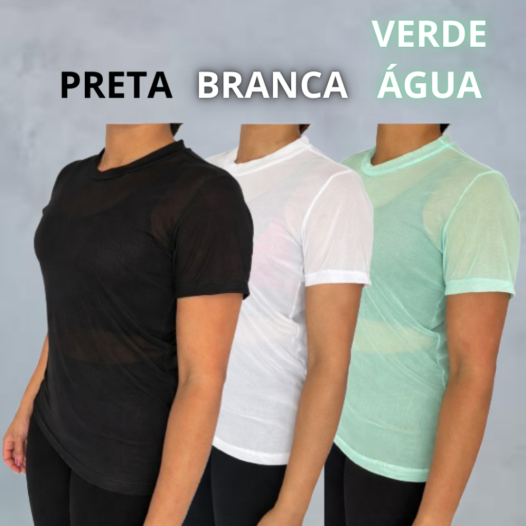 kit Blusa Tule Feminina Transparente Academia Moda Fitness