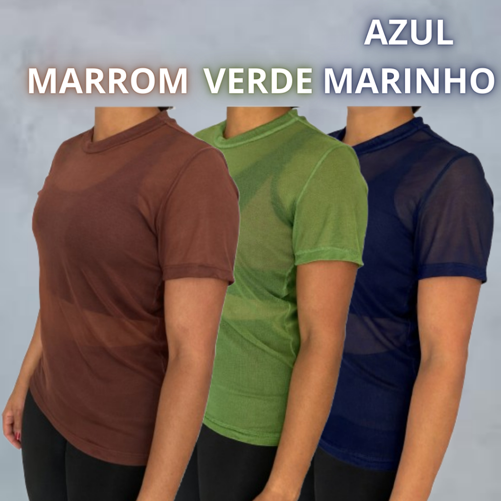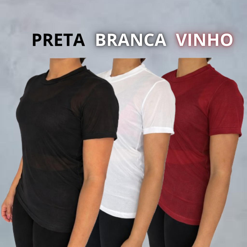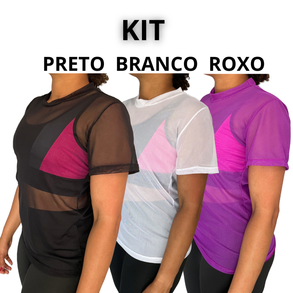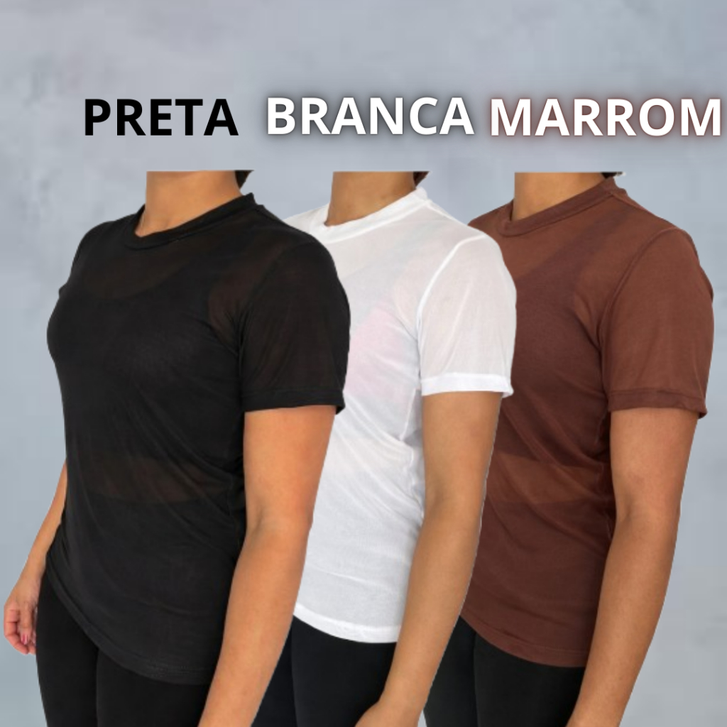 kit Blusa Tule Feminina Transparente Academia Moda Fitness