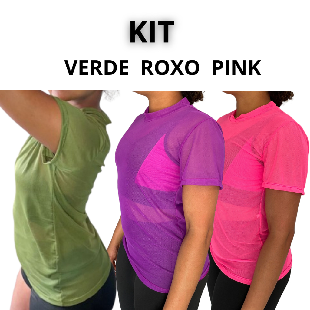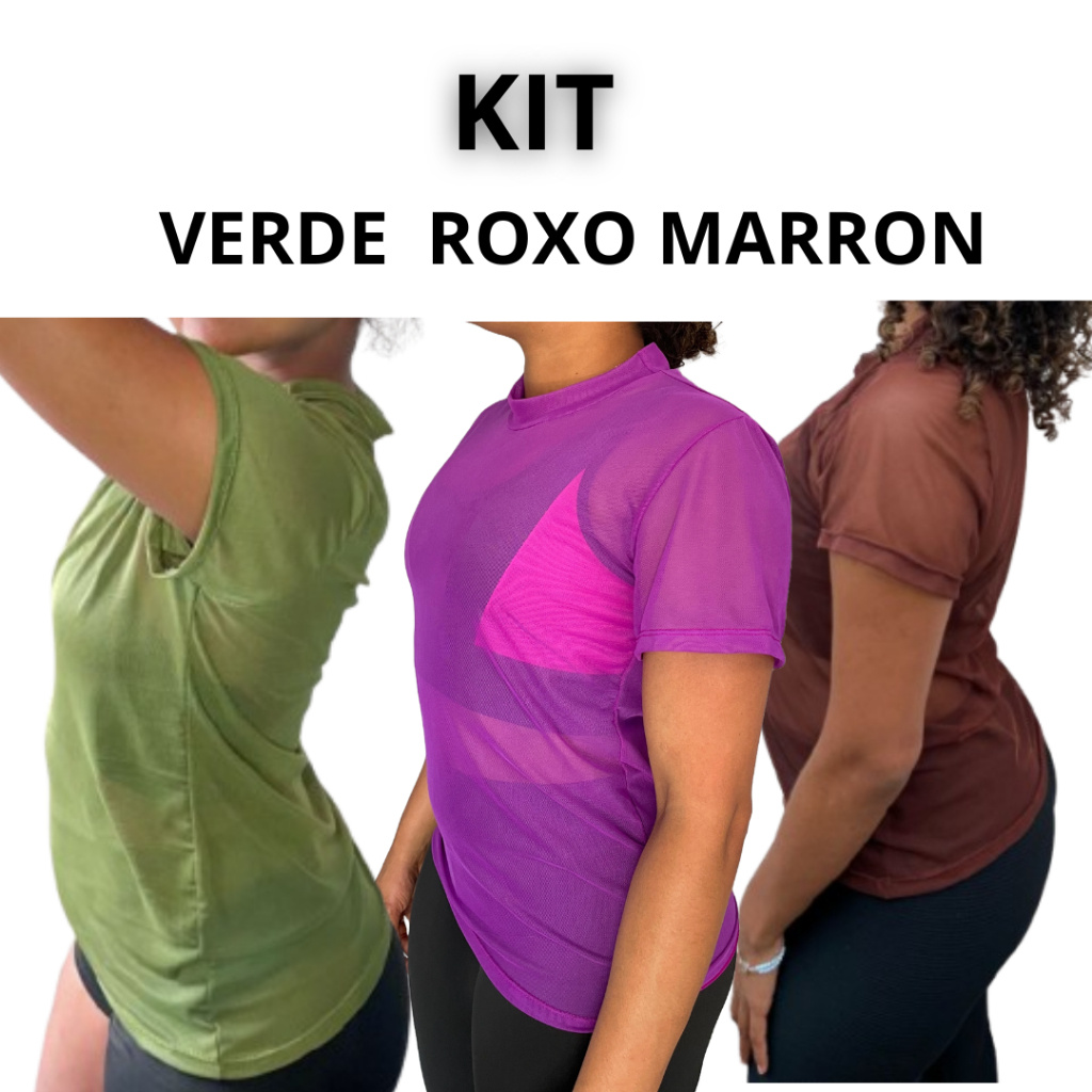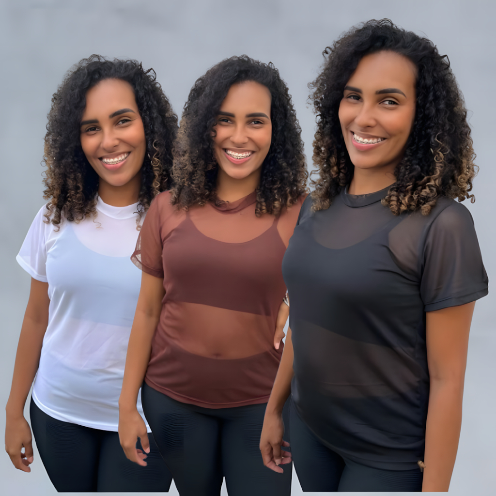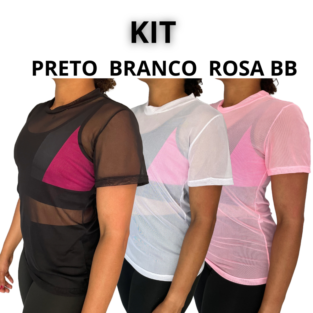 kit Blusa Tule Feminina Transparente Academia Moda Fitness
