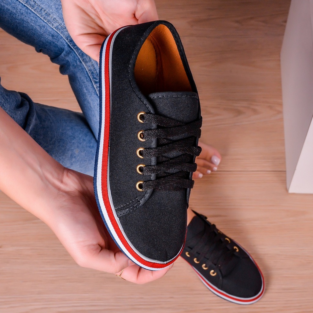 Sapatênis Feminino Moda Listra Blogueira Tênis Casual Versátil Dia a Dia Passeio Confortável Moderno Leve Básico