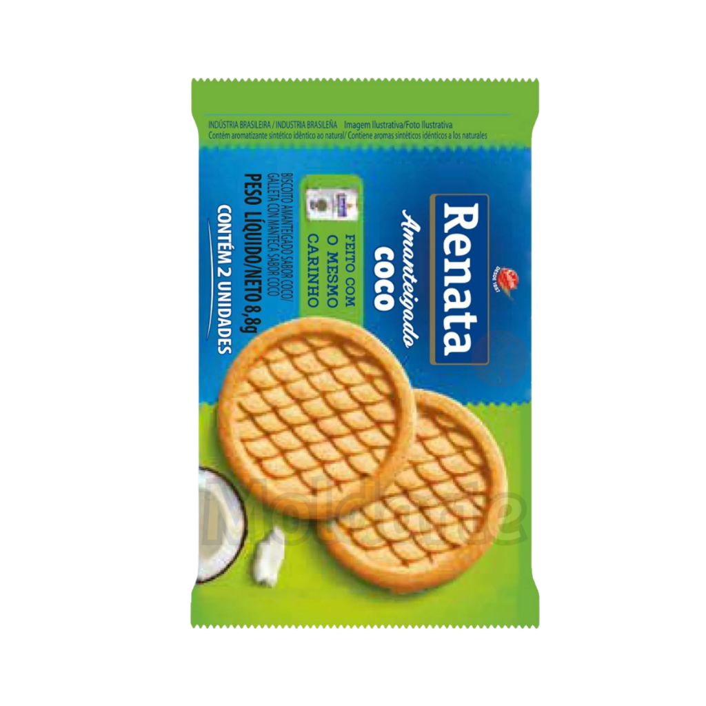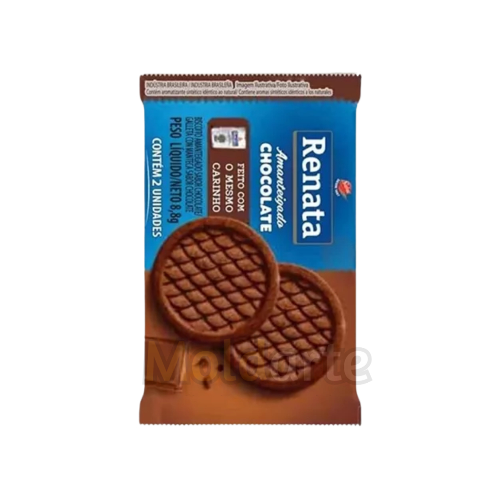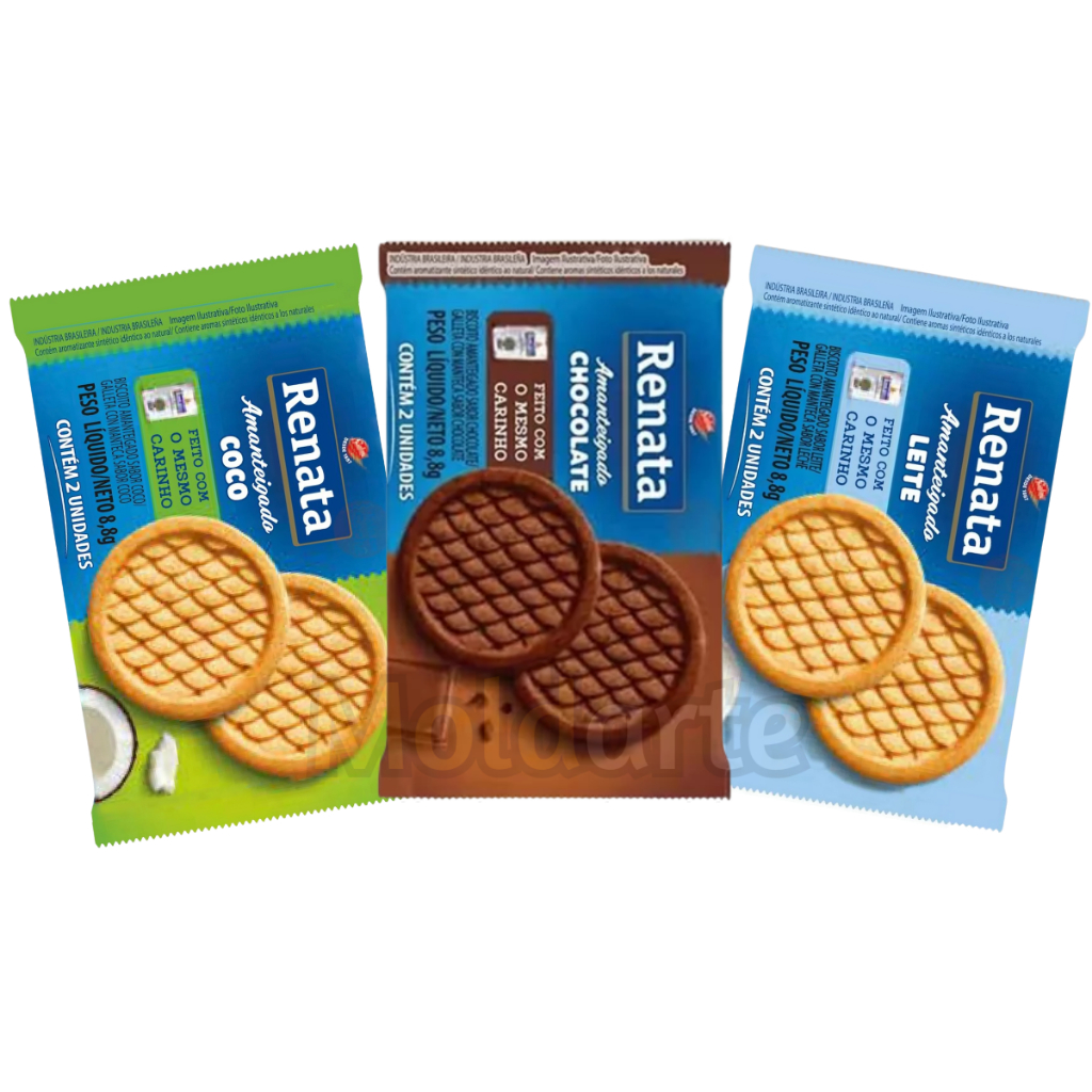 100 Unid Biscoitos Amanteigados em sachê 8,8g Renata biscoito doce chocolate/leite/coco