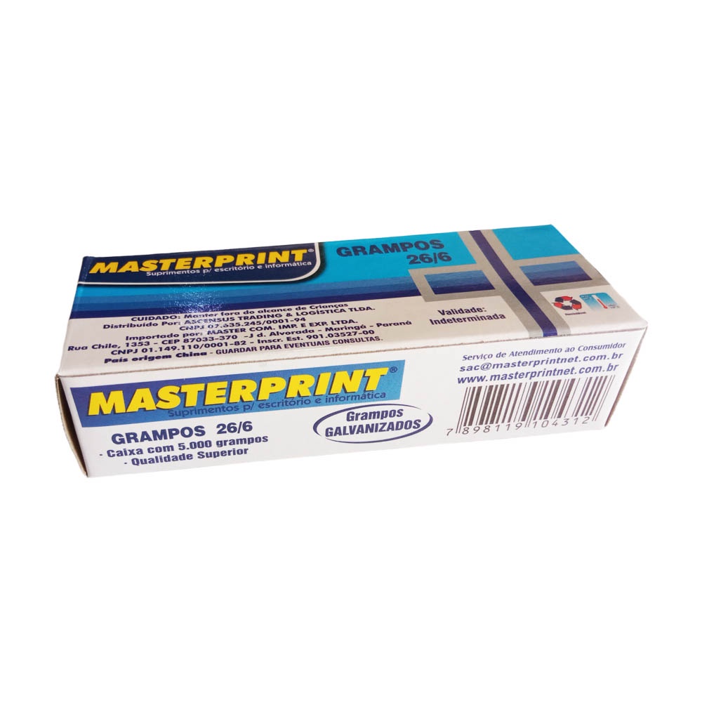 Grampos para Grampeador 26/6 Galvanizados Caixa com 5.000 Grampos Masterprint
