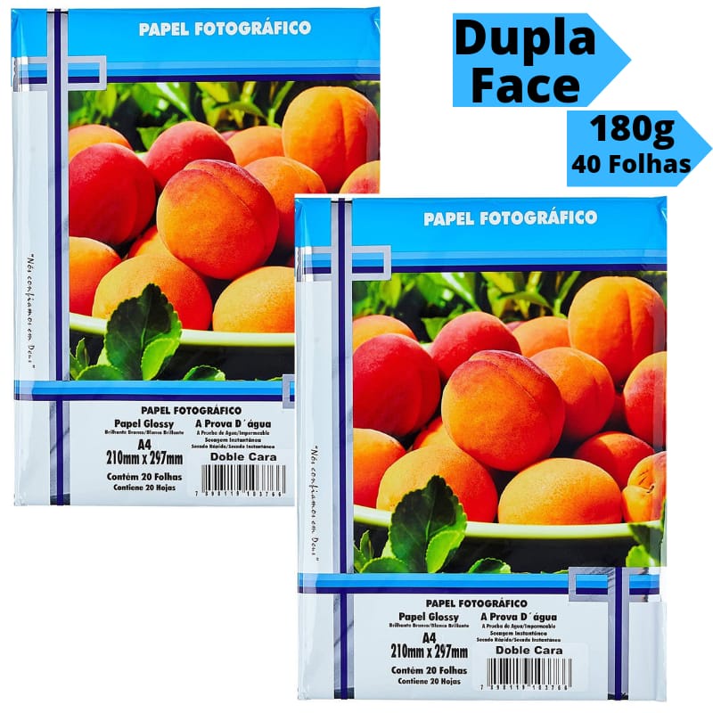 Papel Fotográfico Dupla face Foto 180g A4 Glossy Brilhante Resistente a Água 40 Folhas Masterprint