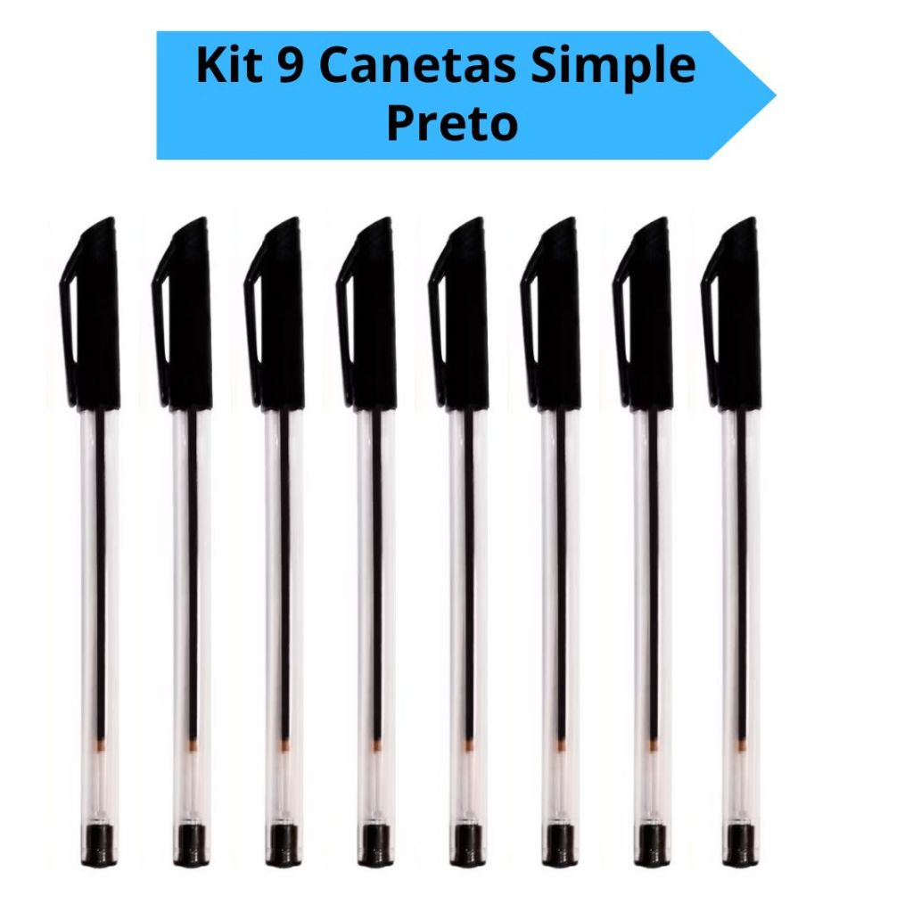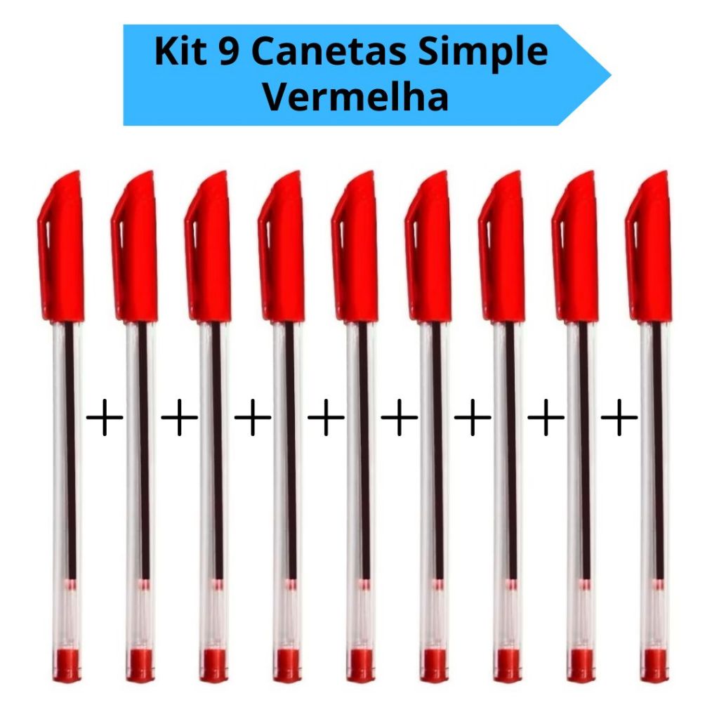 Kit 9 Canetas Simples Vermelha Preto Azul Escolar Leo&Leo
