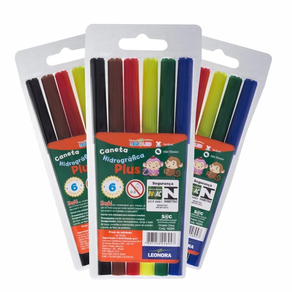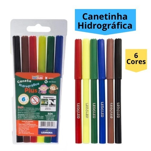 Kit 20 Estojos Canetinha Hidrográfica 6 Cores Hidrocor 120 Canetinhas Escolar Infantil Leo&Leo