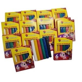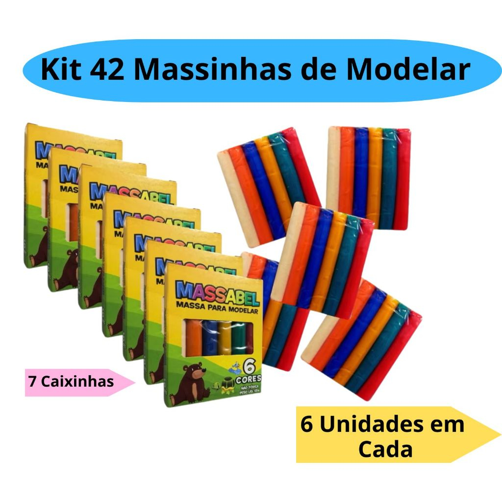 Kit 42 Massinha de Modelar com 6 Cores 65g Festa Lembracinhas Intantil Alcalex