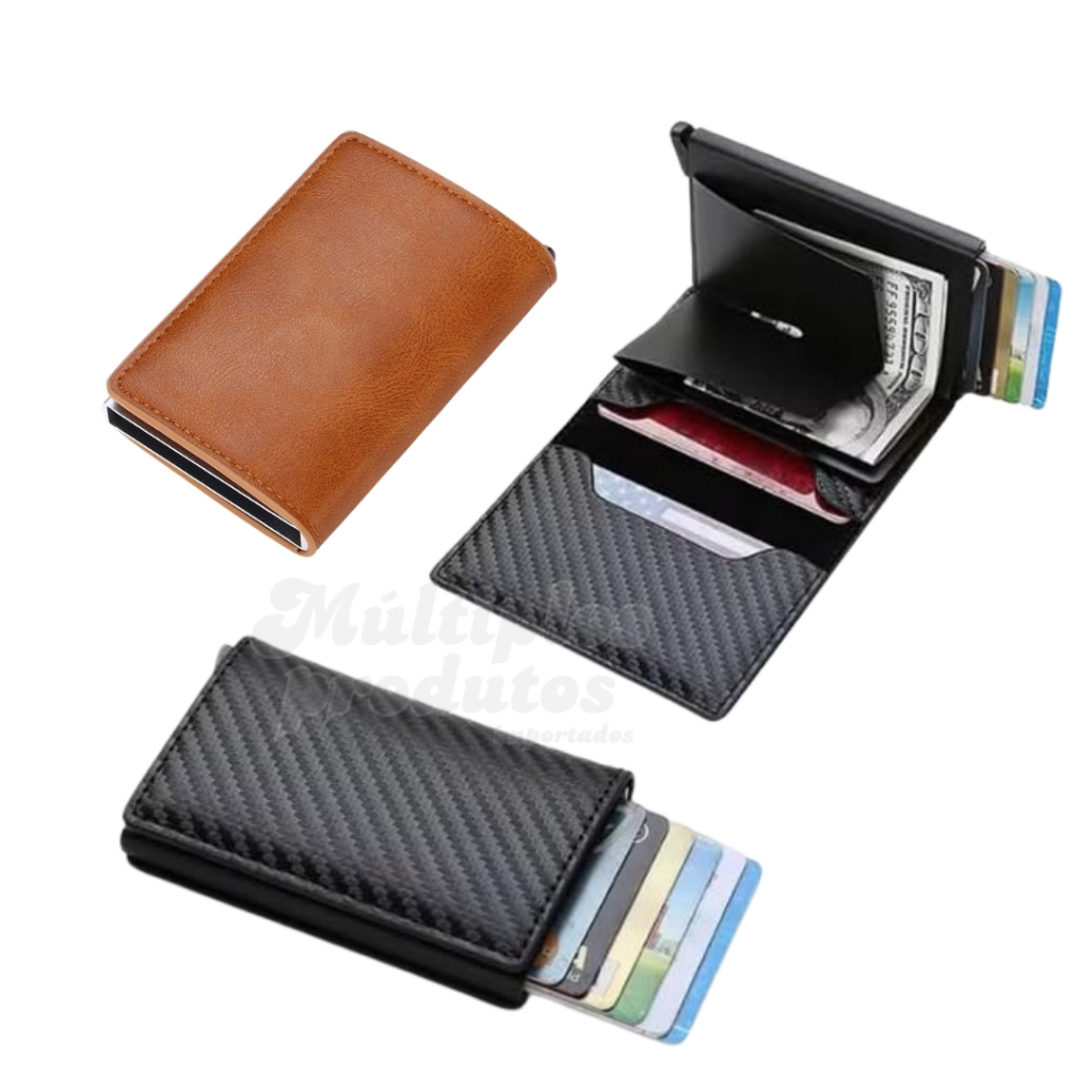 Carteira Porta Cartao Masculino Antifurto Protecao Rfid Feminino Couro Ecológico Masculina