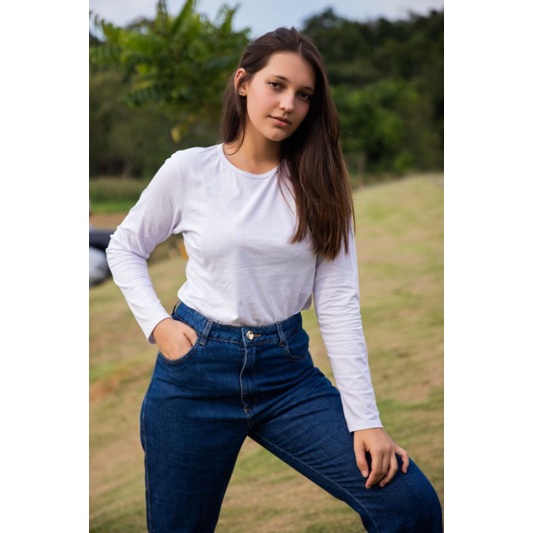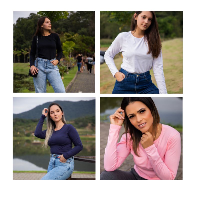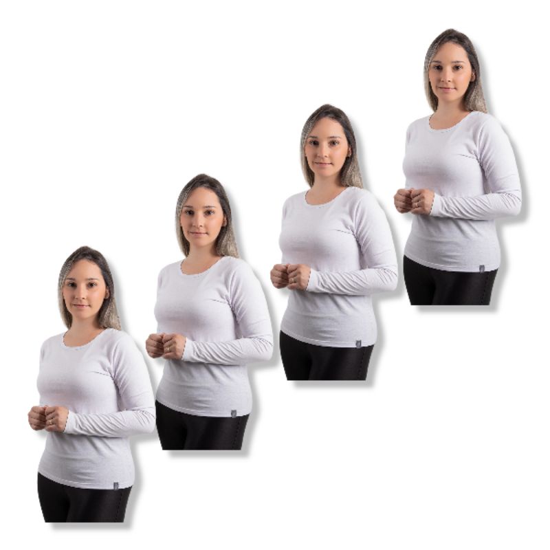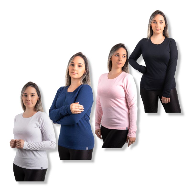 kit 4 blusas feminina tshirt manga longa blusa de frio manga comprida outono inverno