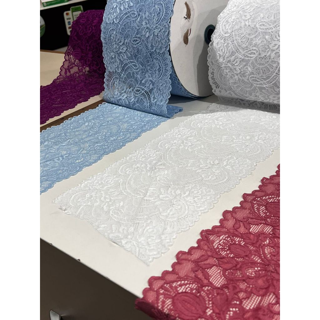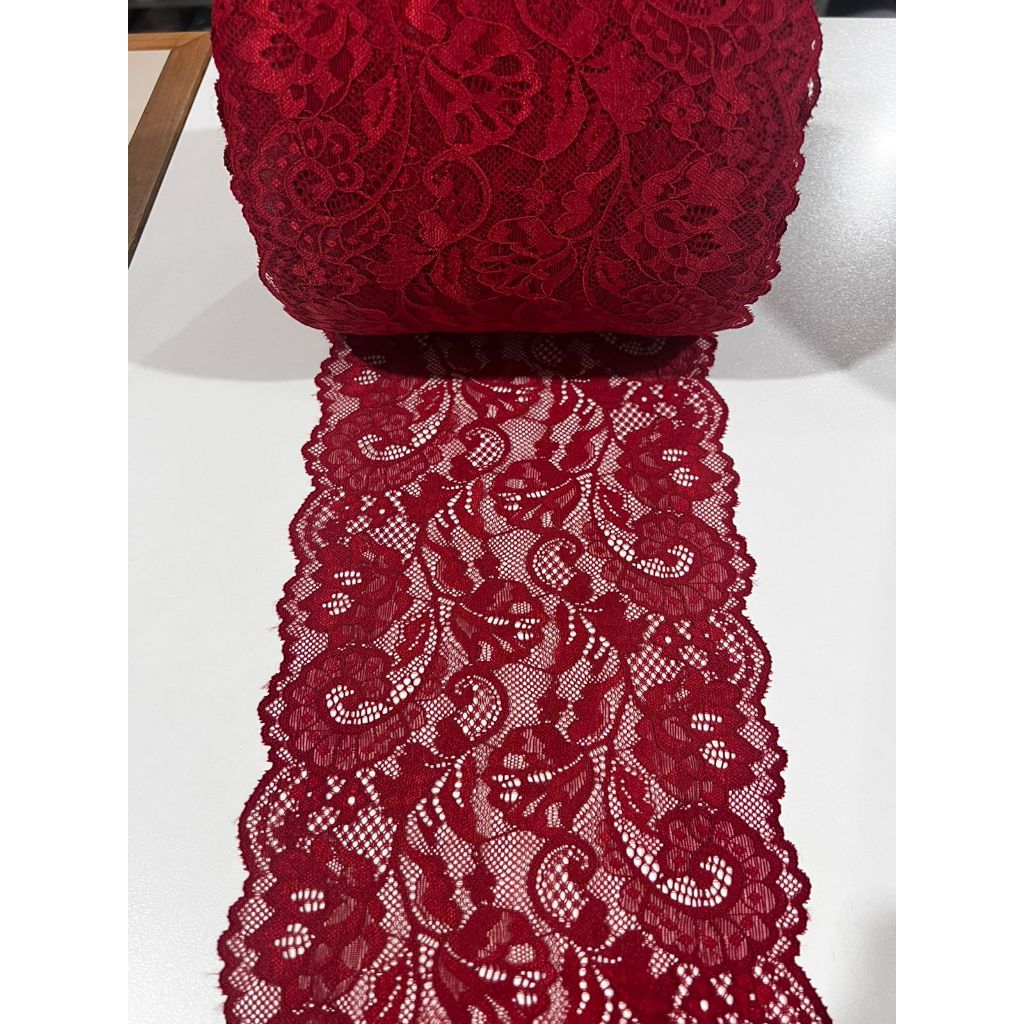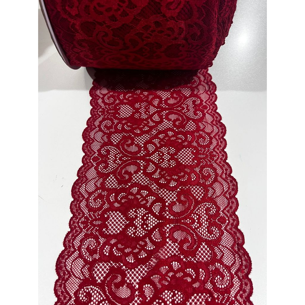 Renda com Elastano PIMENTA/RUBI Poliamida Largura 18cm para Lingerie 5 METROS ou 10 METROS