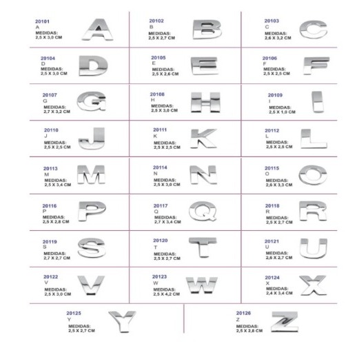 Emblema Alfabeto/Numeral letras Cromados personalizar Carro( unidade)..