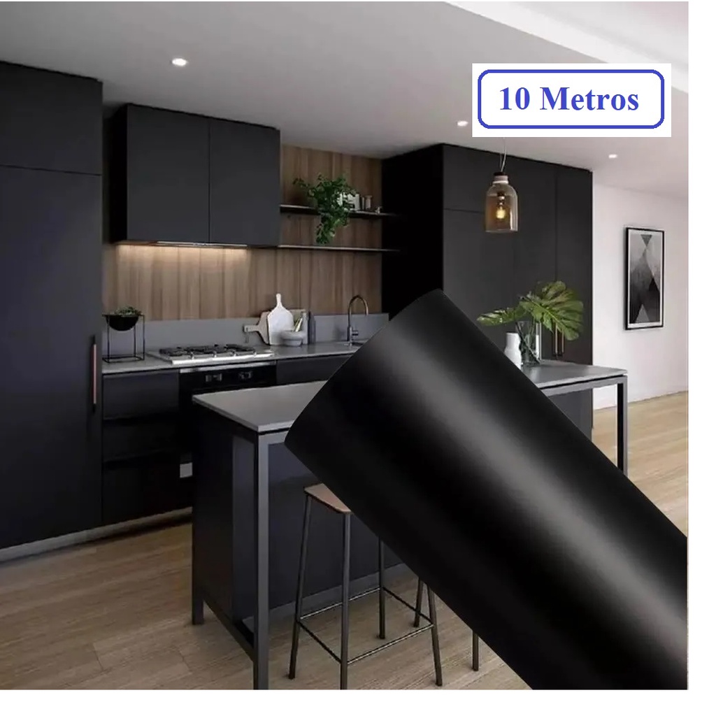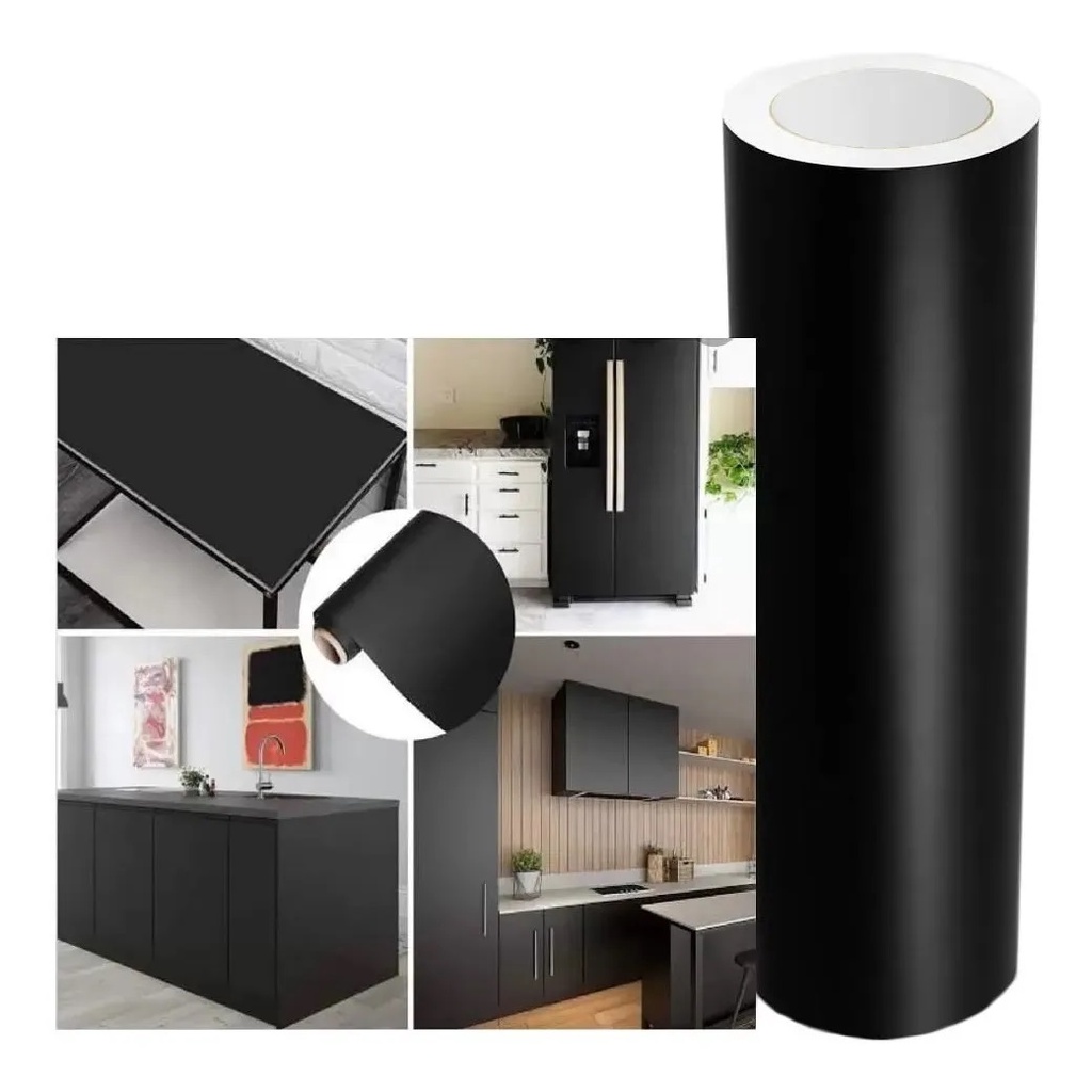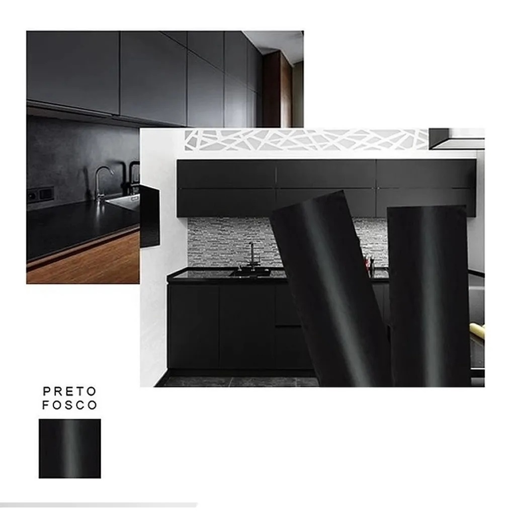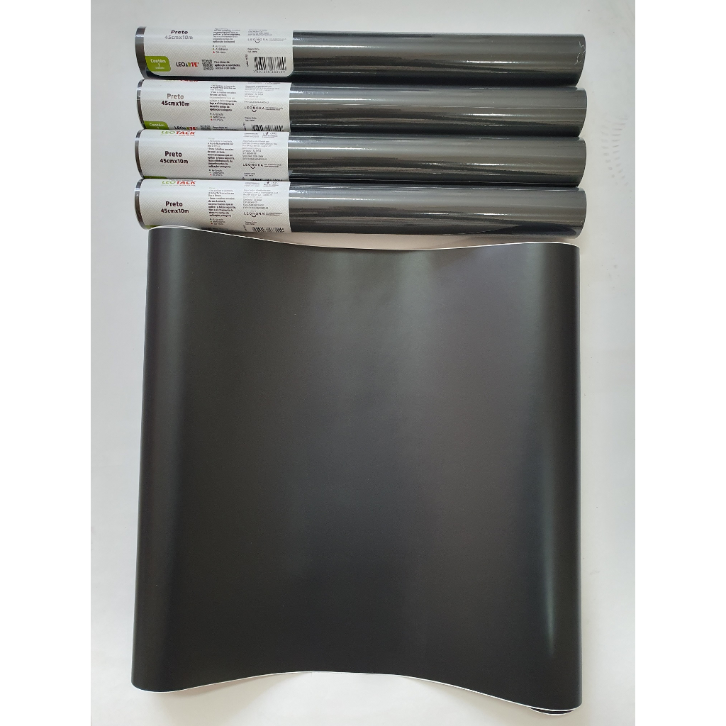 Papel Adesivo Preto Fosco Lavável 10 Metros x 45 cm Leotack tipo Contact