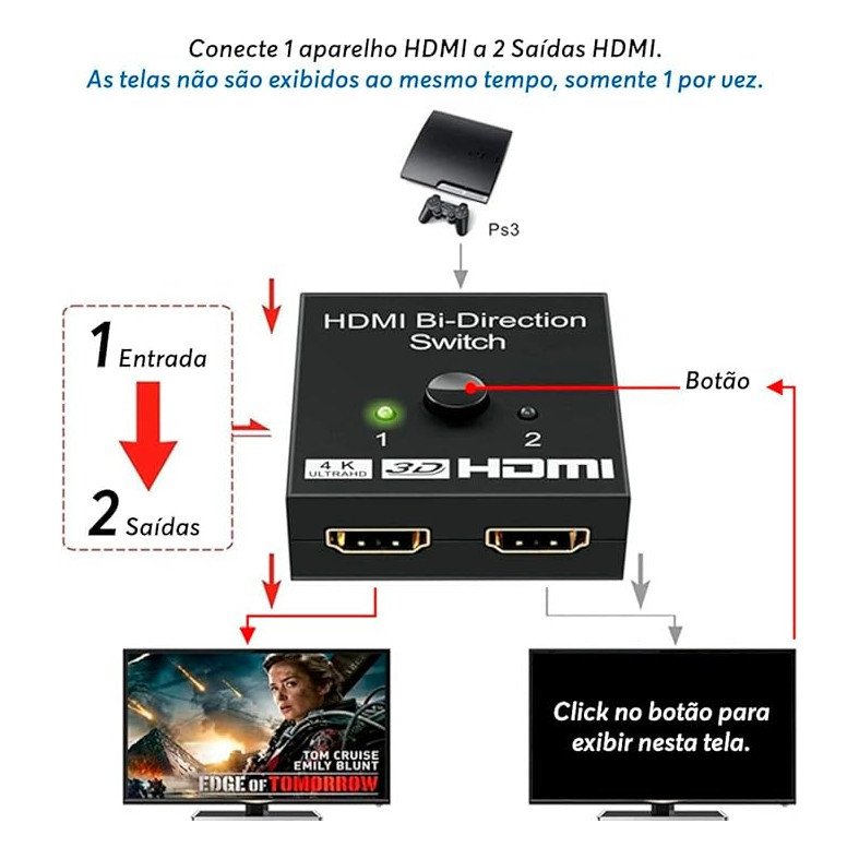 Chaveador Switch Hdmi 2x1 E 1x2 4k Splitter Duplicador Hdmi