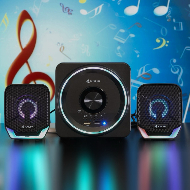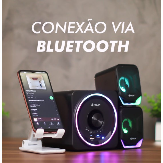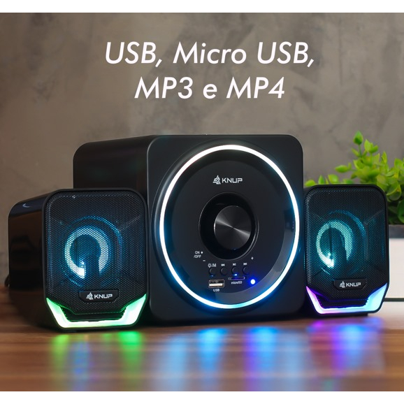Home Theater Bluetooth Knup 16w Rms Com Subwoofer 2.1 Caixa De Som Com Radio FM Soundbar para Tv P2