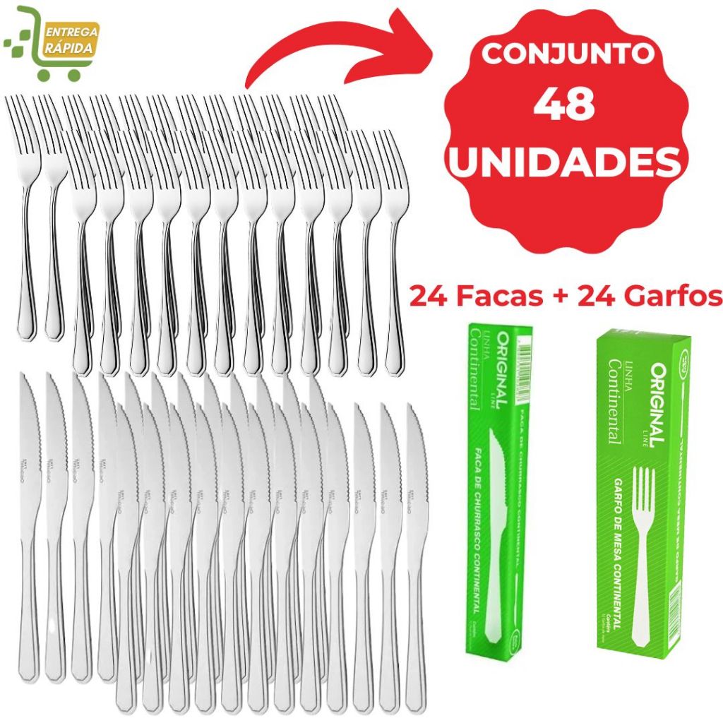 Kit 96 Talheres de 48 Garfos e 48 Facas Resistente Buffet Restaurante Lanchonete