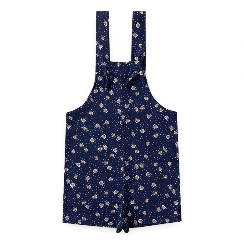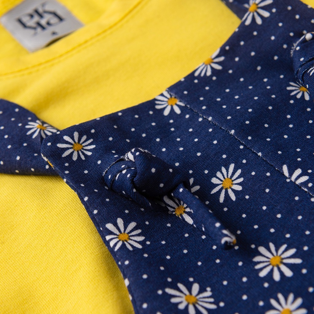 Salopete Feminino Infantil Verão Amarelo com Azul Florido