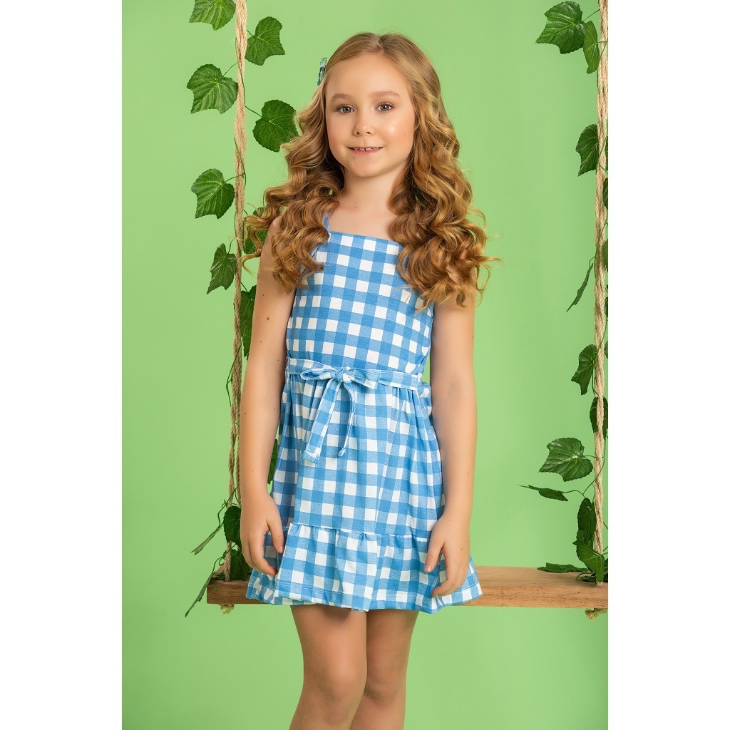 Vestido Infantil Feminino Xadrez Amarração