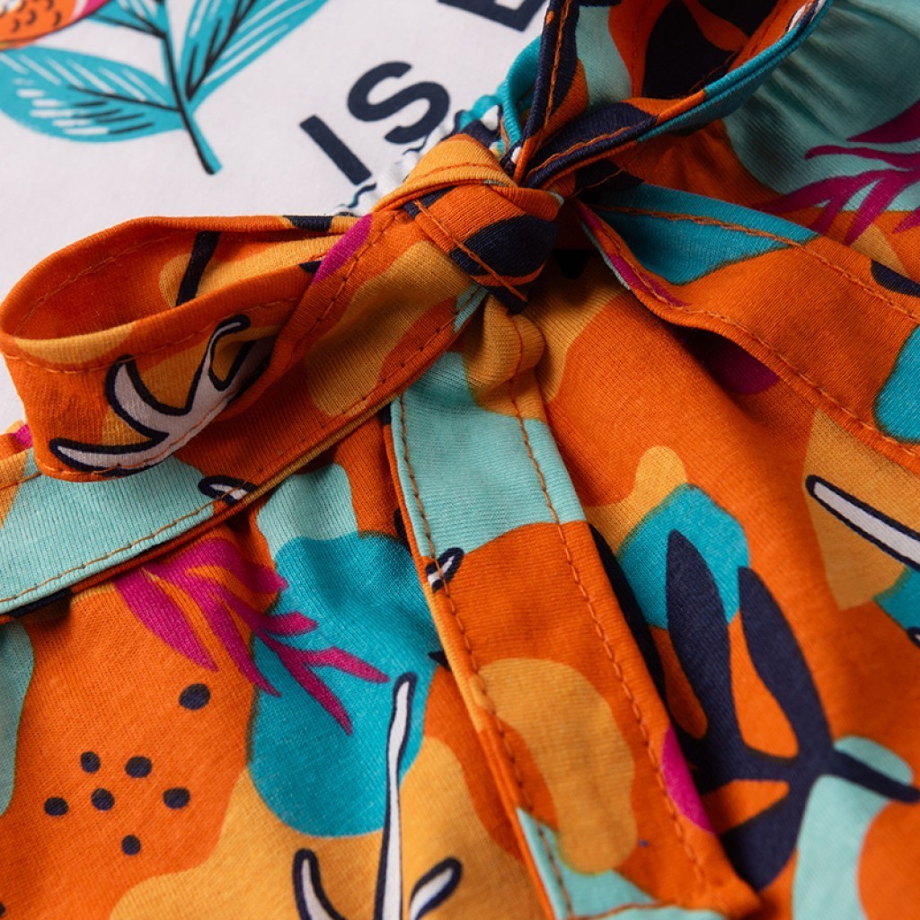Conjunto Feminino Infantil Verão Pássaros Laranja