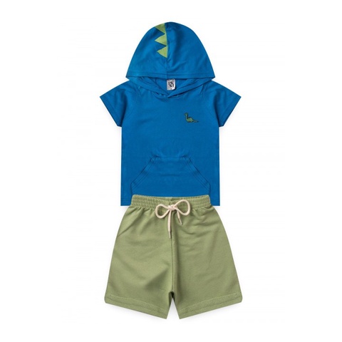 Conjunto Masculino Infantil Verão Dinossauro Azul