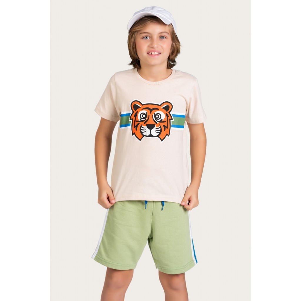 Conjunto Masculino Infantil Verão Tiger Creme