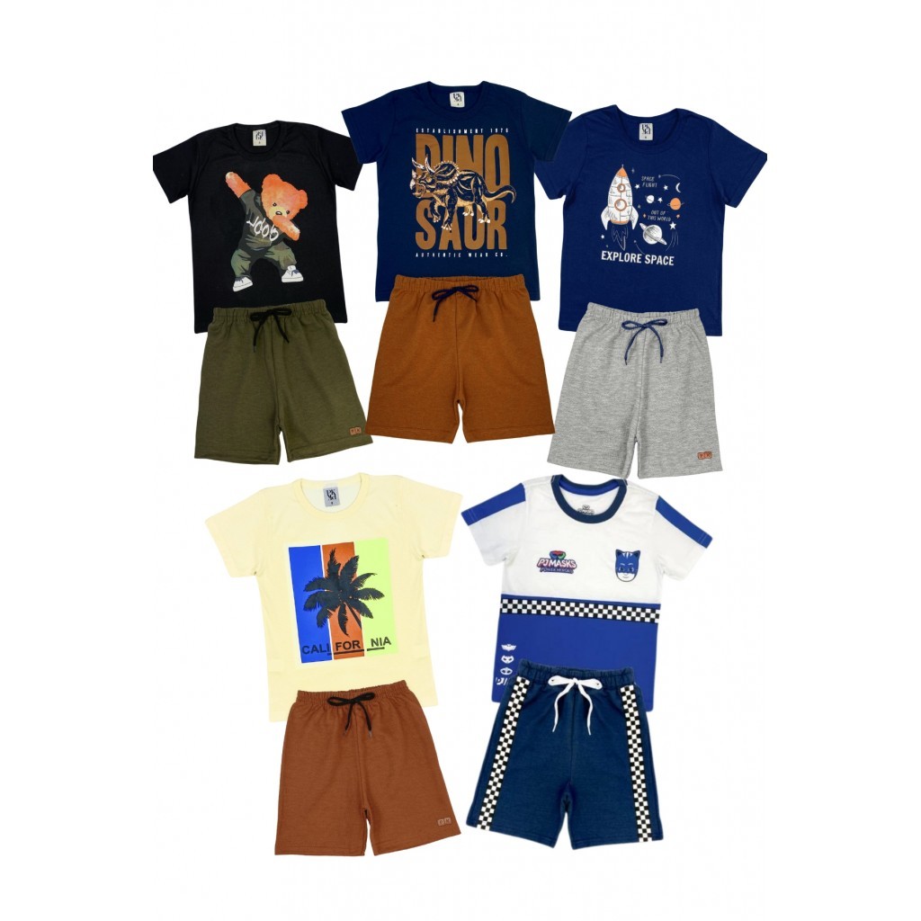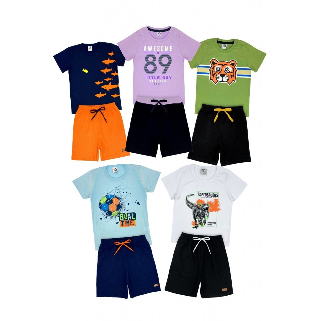 Kit Sortido 10 Peças de Roupas Menino Verão - 5 Camisetas + 5 Bermudas
