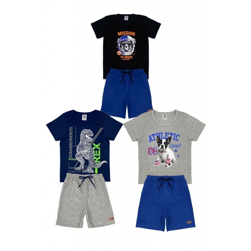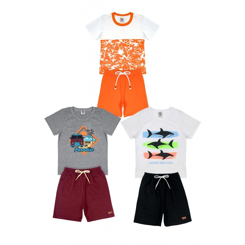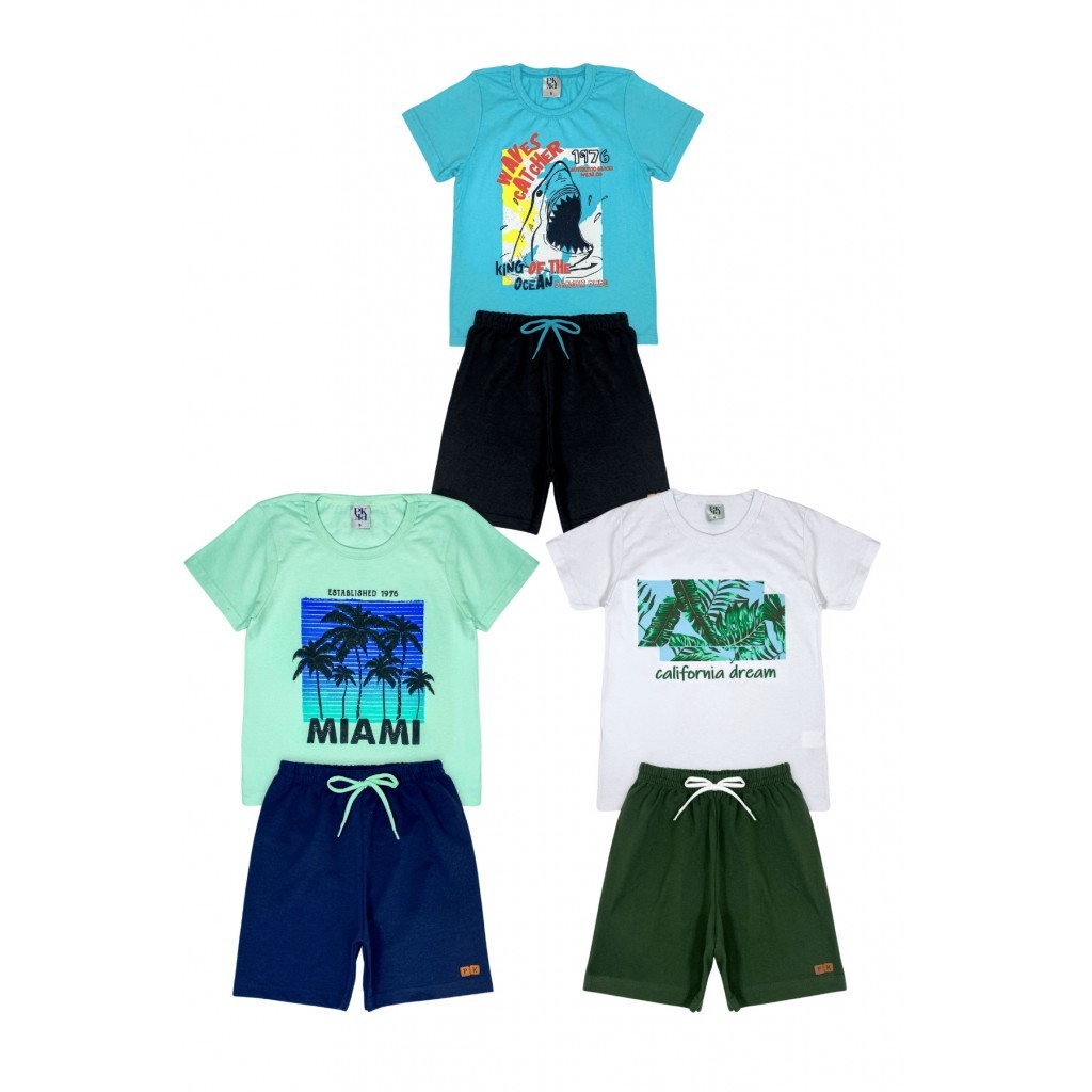 Kit Sortido 6 Peças de Roupas Infantil Menino Verão - 3 Camisetas + 3 Bermudas