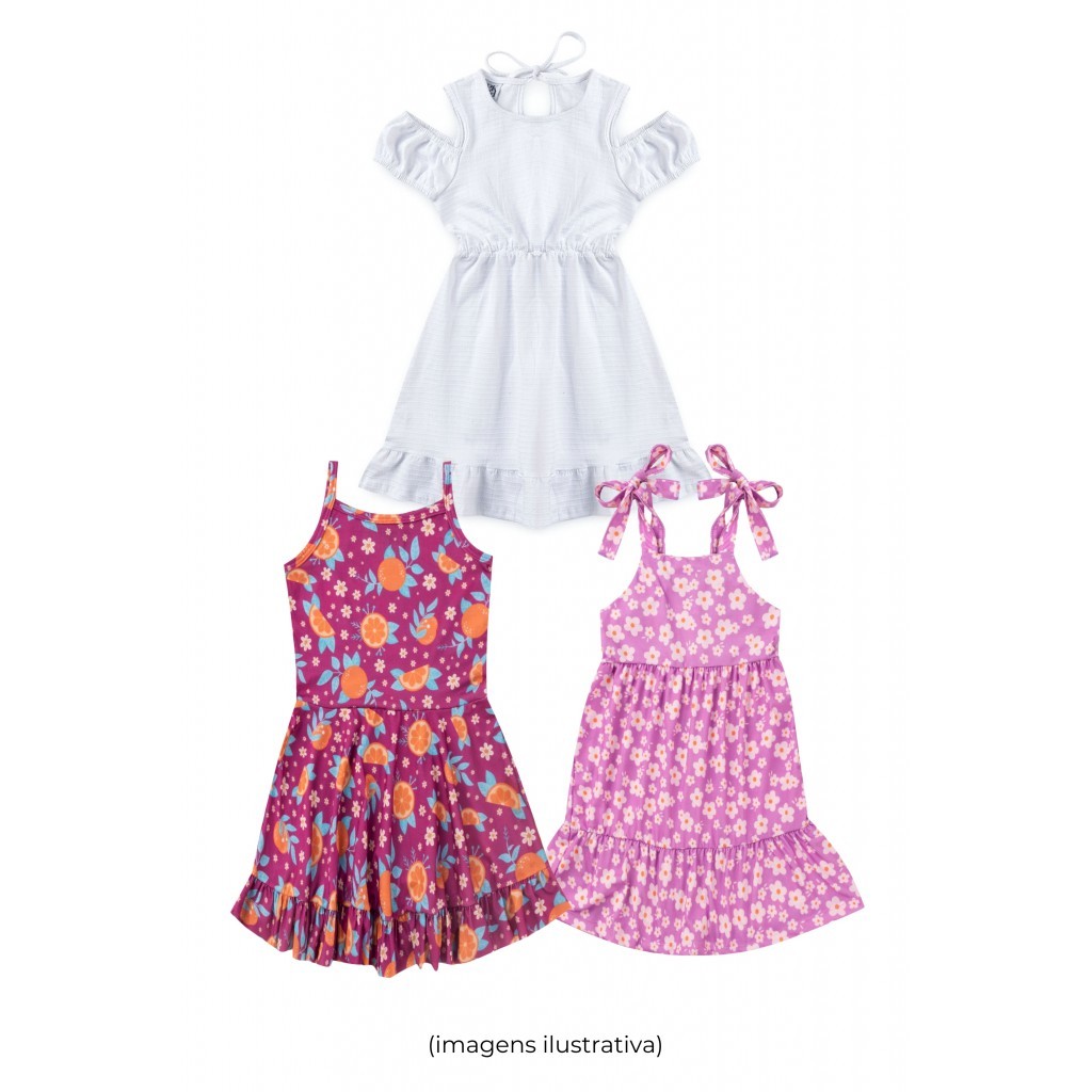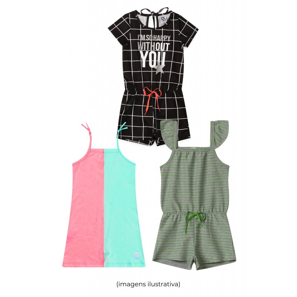 Kit Sortido Vestidos e Macaquinhos Infantis Feminino Verão - 3 Peças