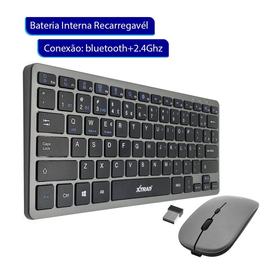 Kit Teclado e Mouse Sem fio Bluetooth Conexão 2.4ghz Recarregável HK8860