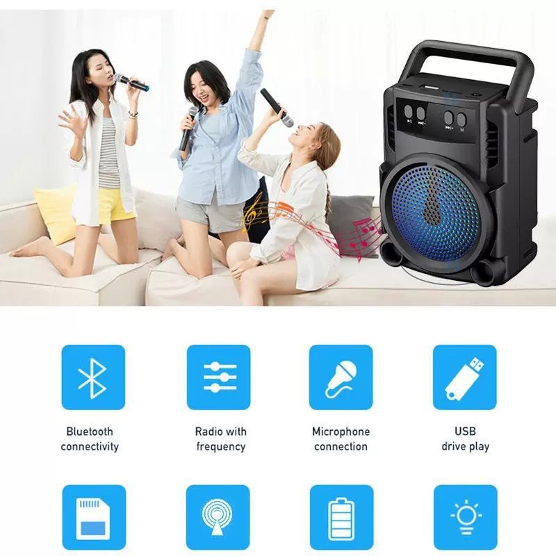 Caixa de Som Portátil Bluetooth com LED Rádio FM USB e SD