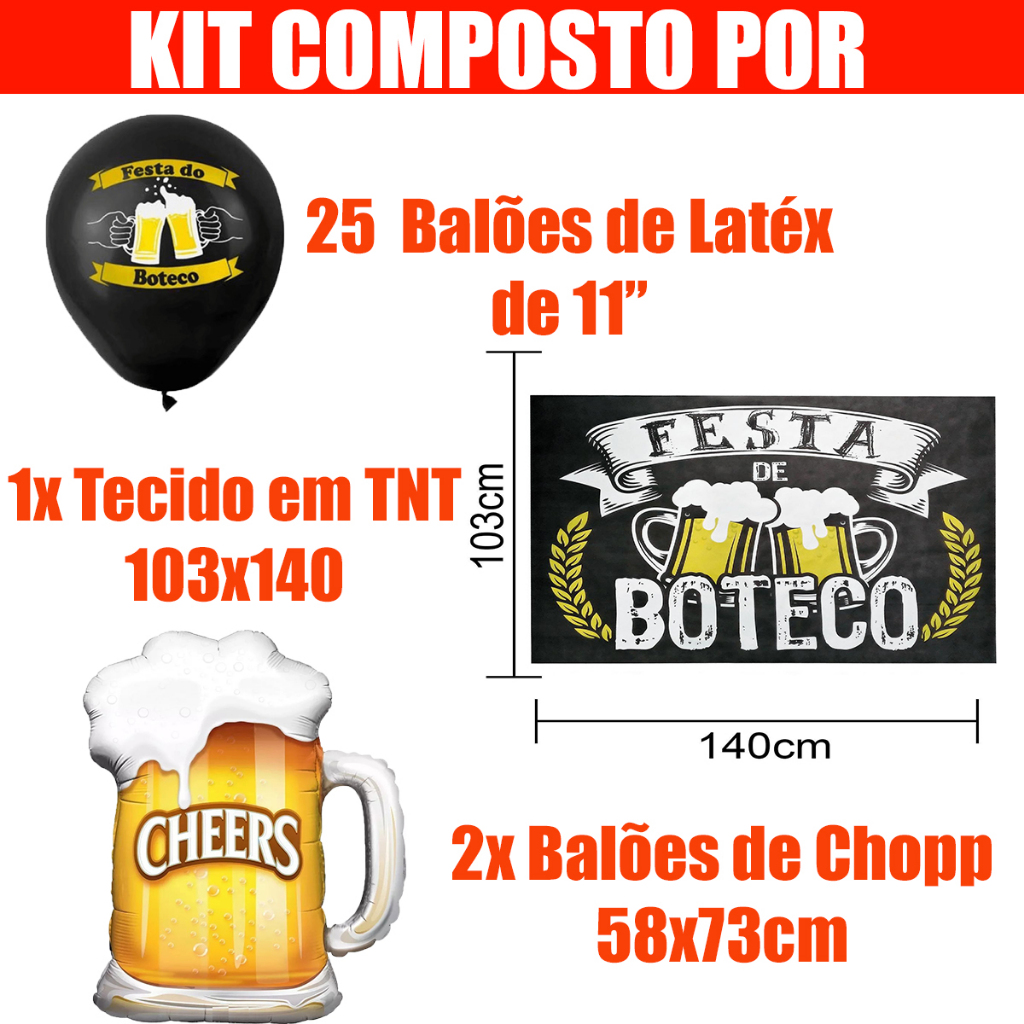 Kit Decoração Festa De Boteco Completa Tnt + Balões Chop Bar