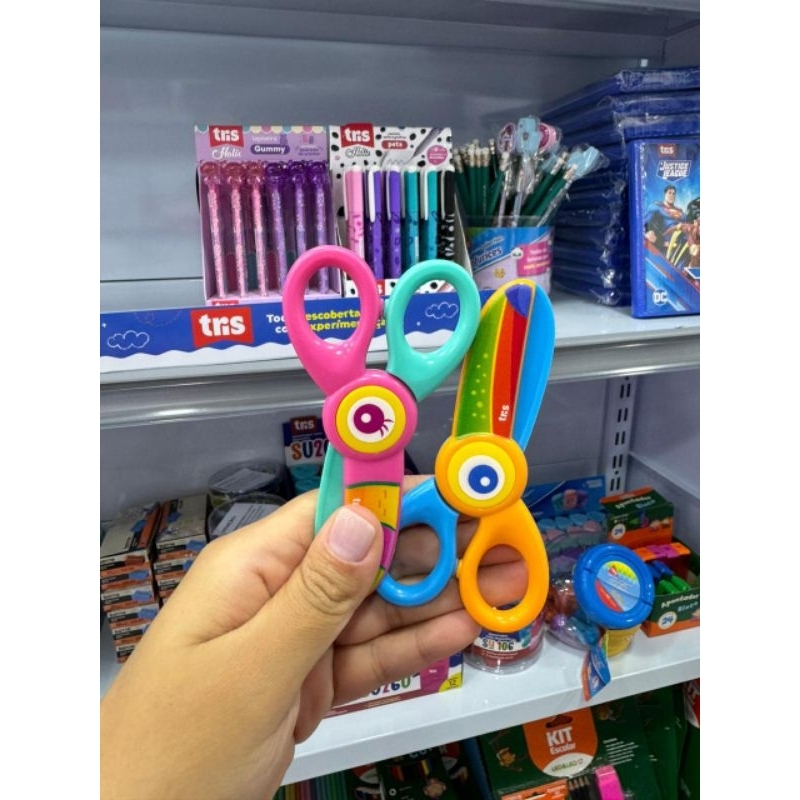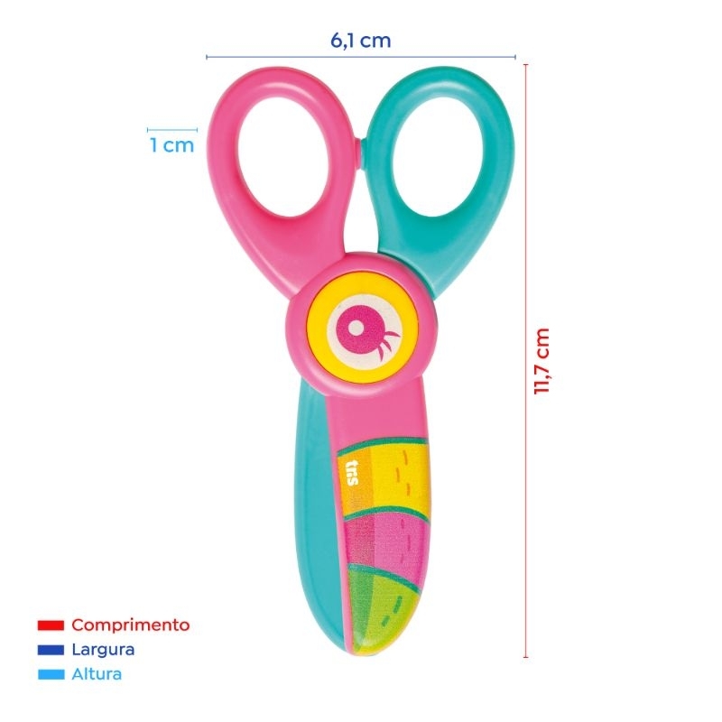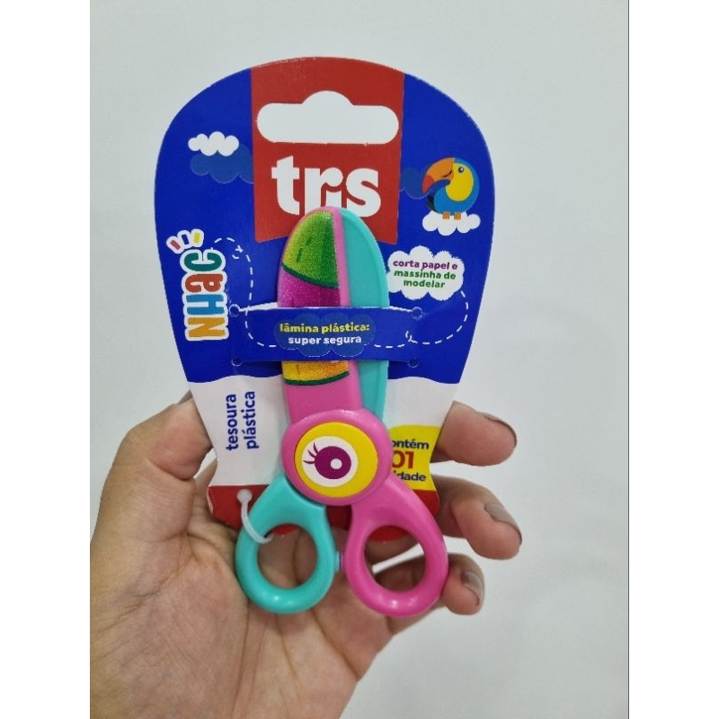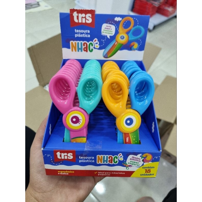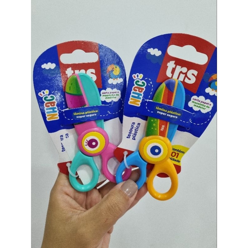 Tesoura Plástica Infantil Nhac Tris Ponta Redonda / Corta Papel e Massinha de Modelar / Pré Escola / Papelaria