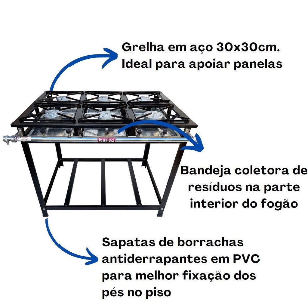 Fogão Industrial de Piso 6 Bocas Alta Pressão 30x30cm Itafaz