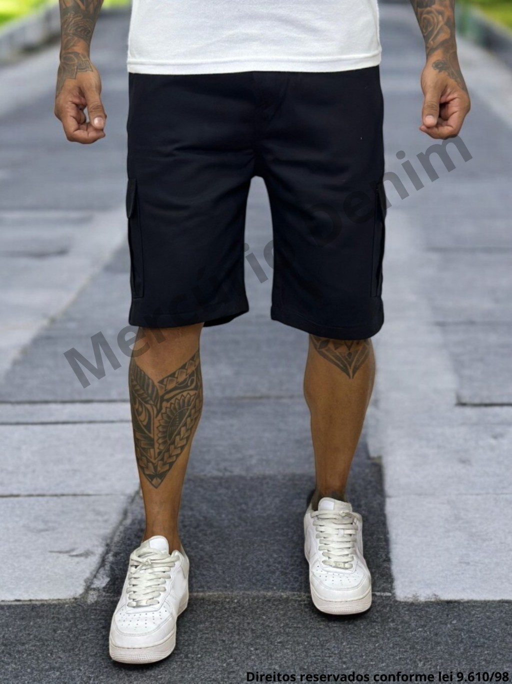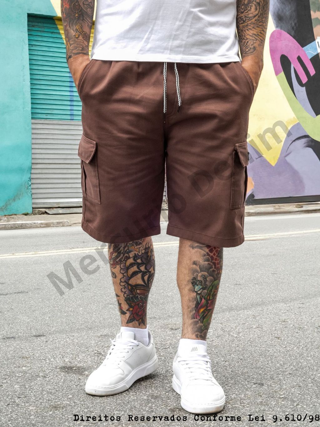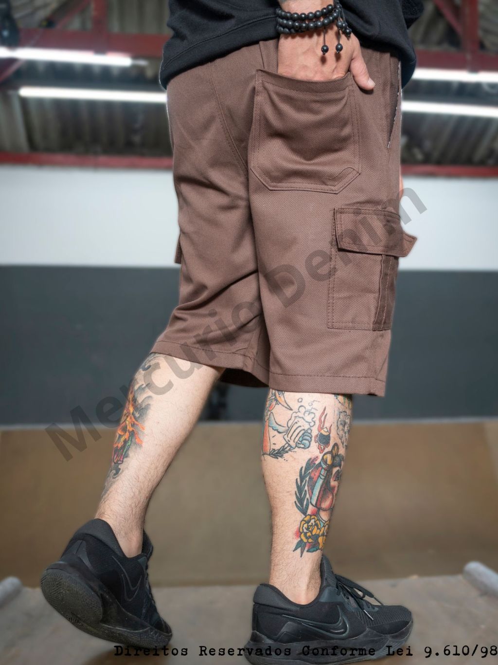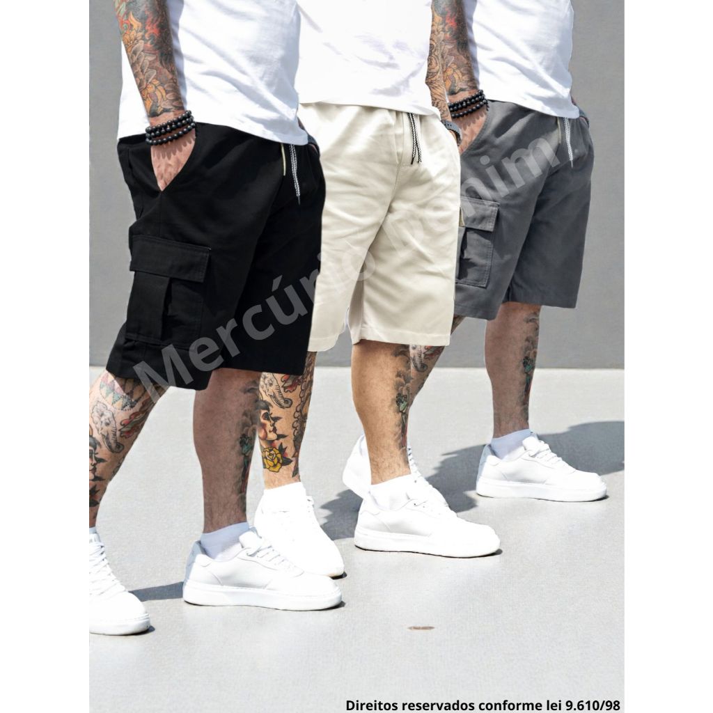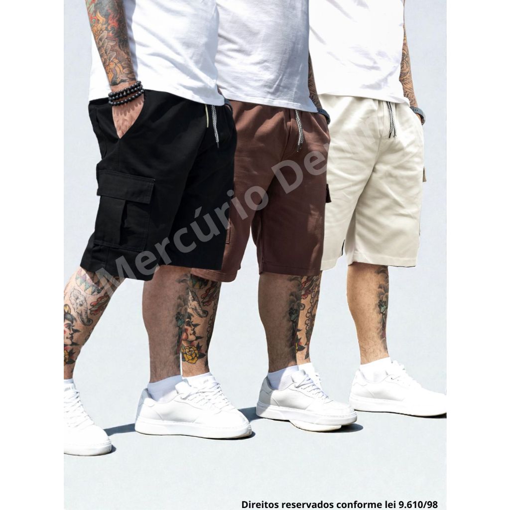 Kit 3 Bermuda Cargo Masculina Sarja Colorida 100% Algodão Utilitária 5 Bolsos