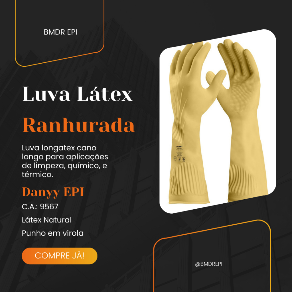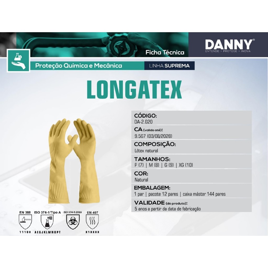Kit 5 Luva Ranhurada de Latex Longatex Danny CA 9567 Luva Seguranca Limpeza Resistencia Termica