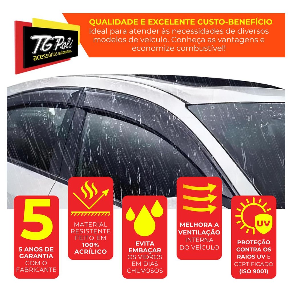 Calha de Chuva Ford New Fiesta Sedan 2011 a 2017 4 Portas TG Poli Defletor 4P Protetor Janelas Fumê