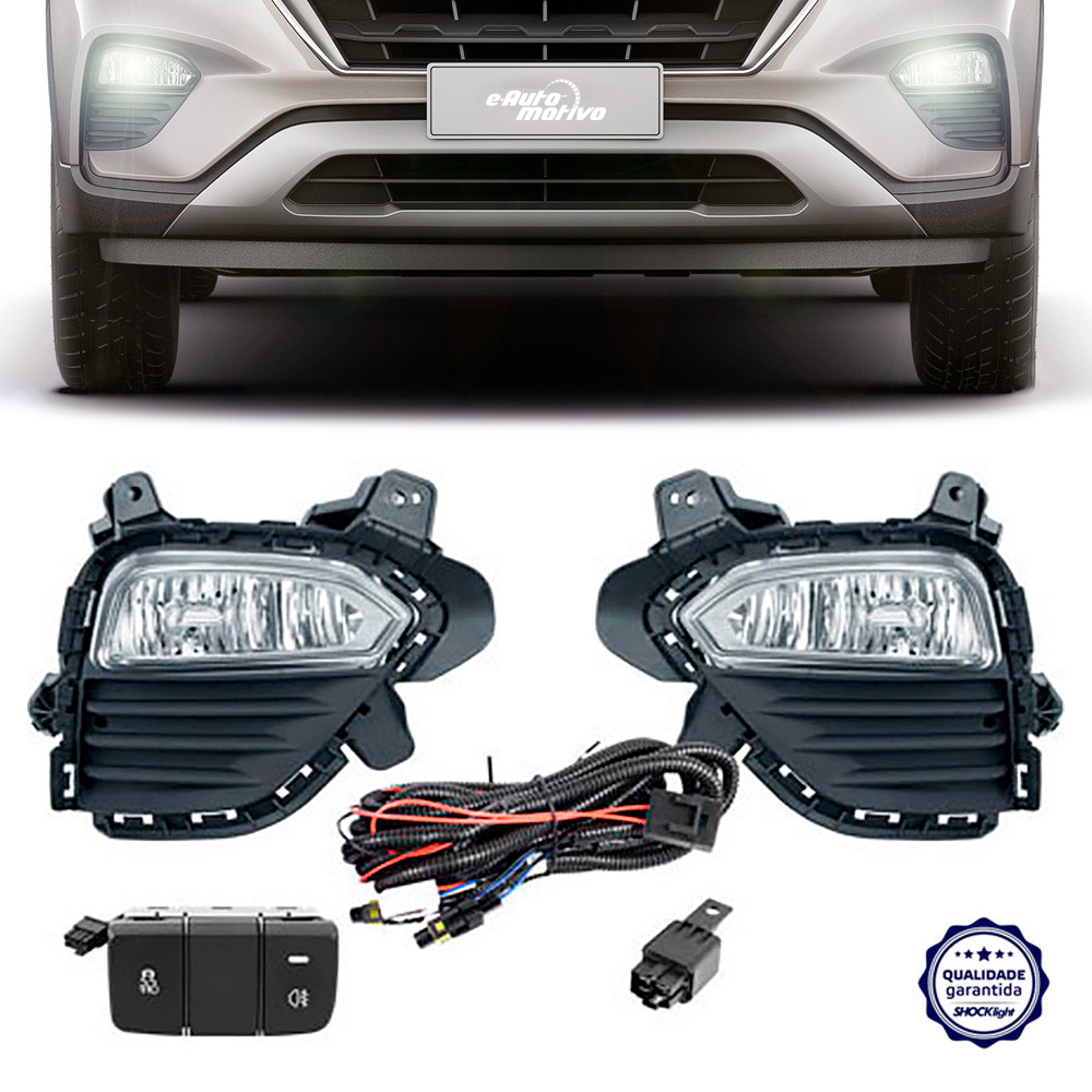 Farol de Milha Hyundai Creta 2017 a 2019 Shockligth SL-121310 Auxiliar Neblina Preto Botão Original Kit