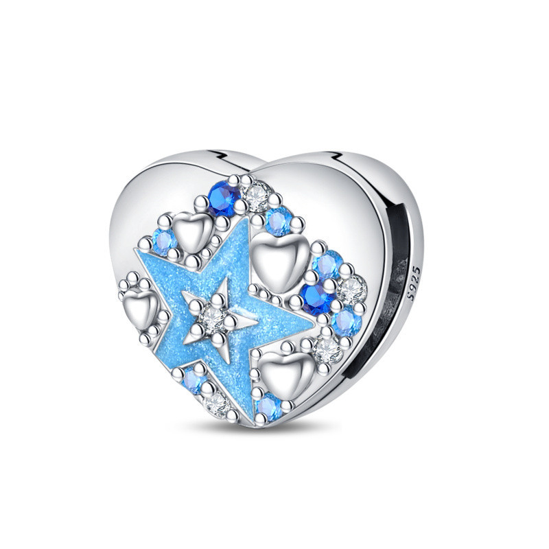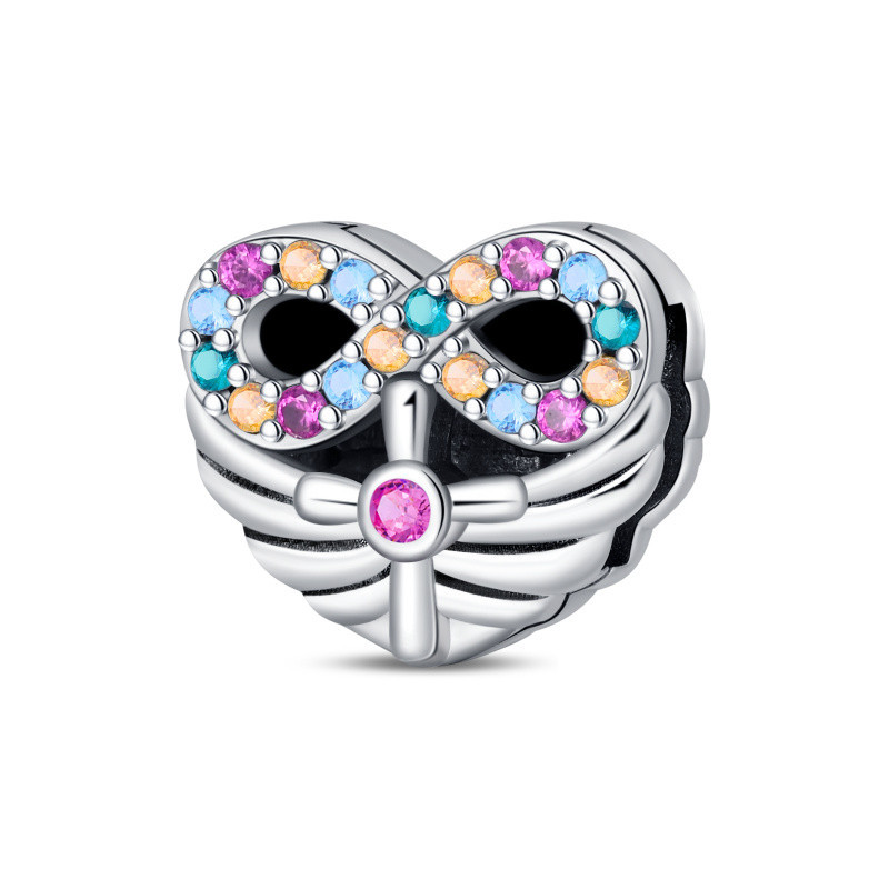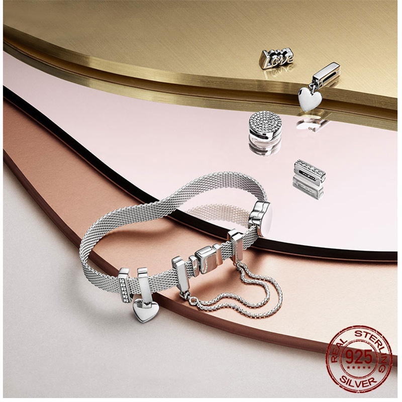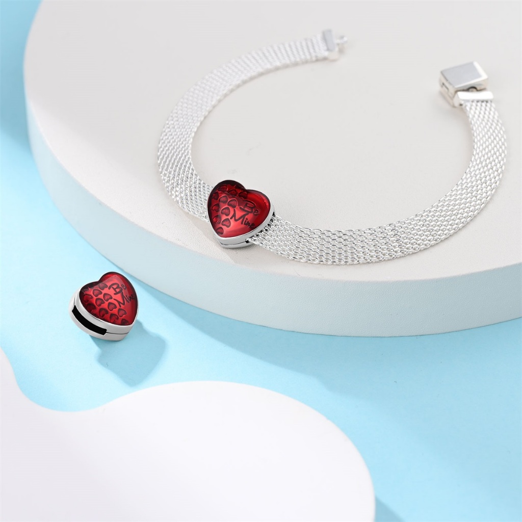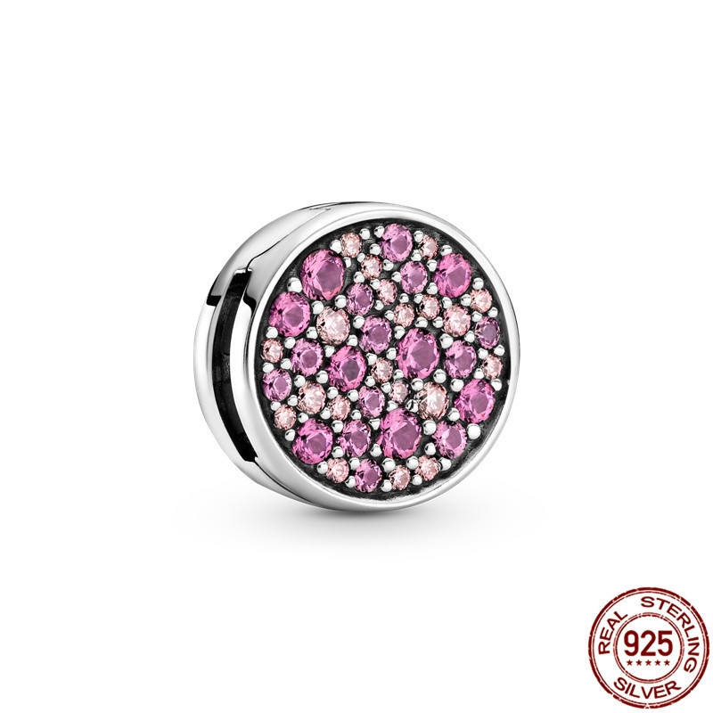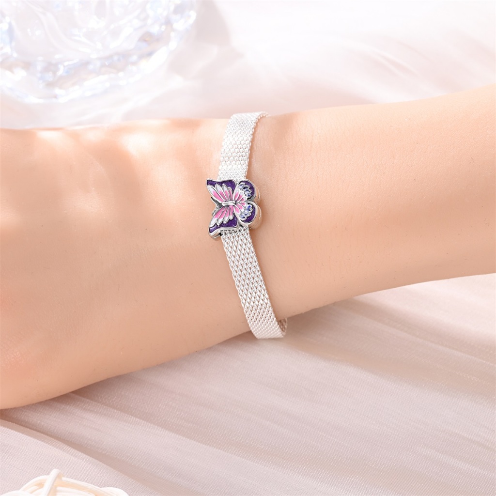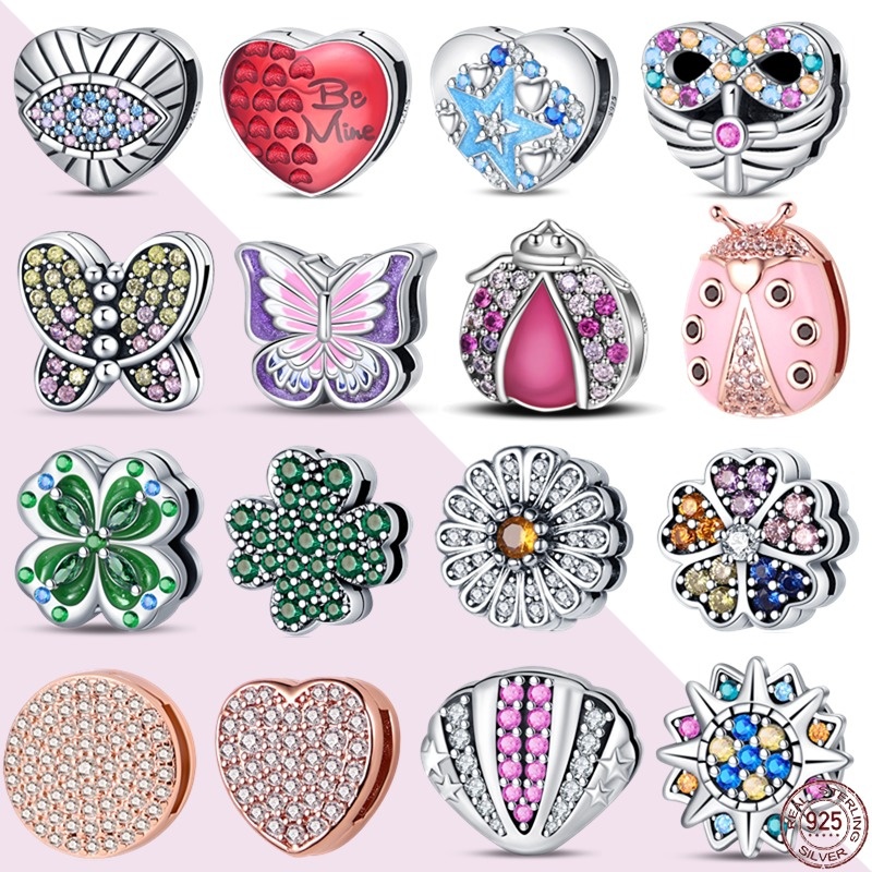Flat Bead Series-Violet Butterfly Charm 925 Silver Exclusive Red Heart Circle Clip Bead Adequado para Presentes de Jóias Pulseiras
