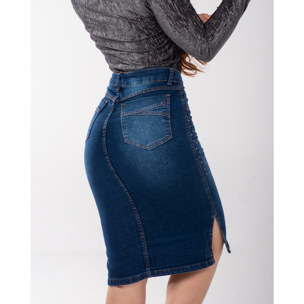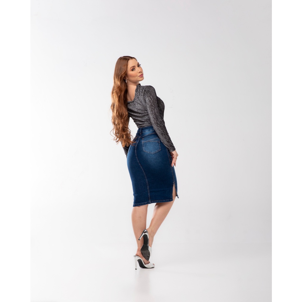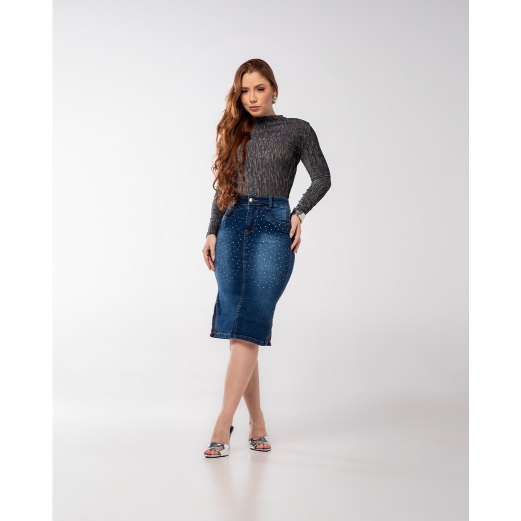 Saia Jeans Evangélica com Estampa Azul e Lycra 7PALLAS