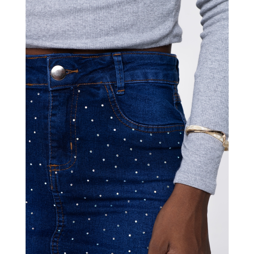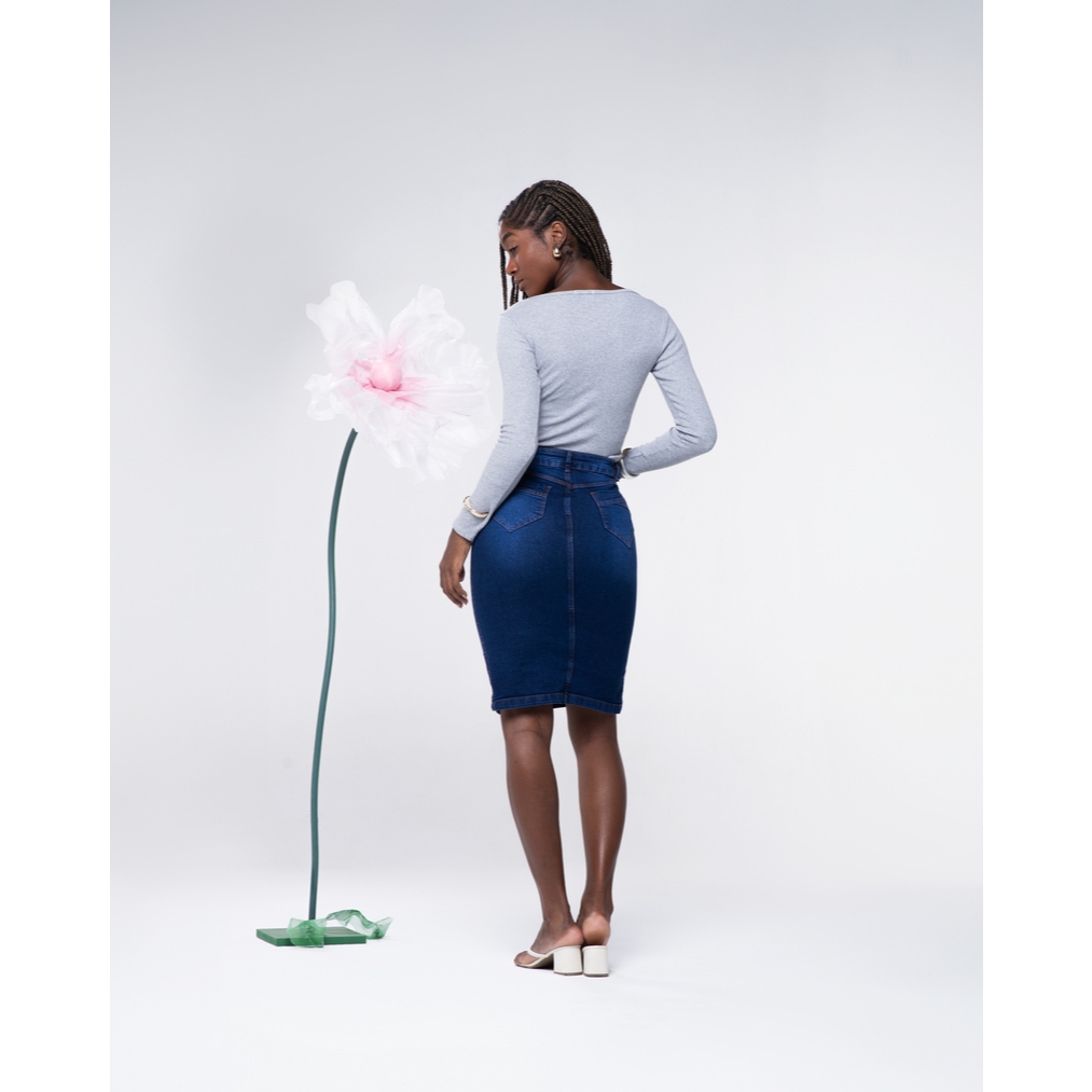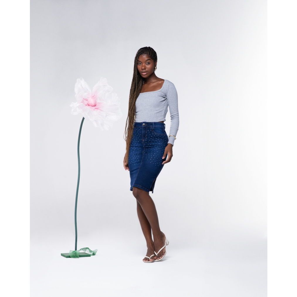 Saia Jeans Evangélica com Estampa Azul e Lycra 7PALLAS