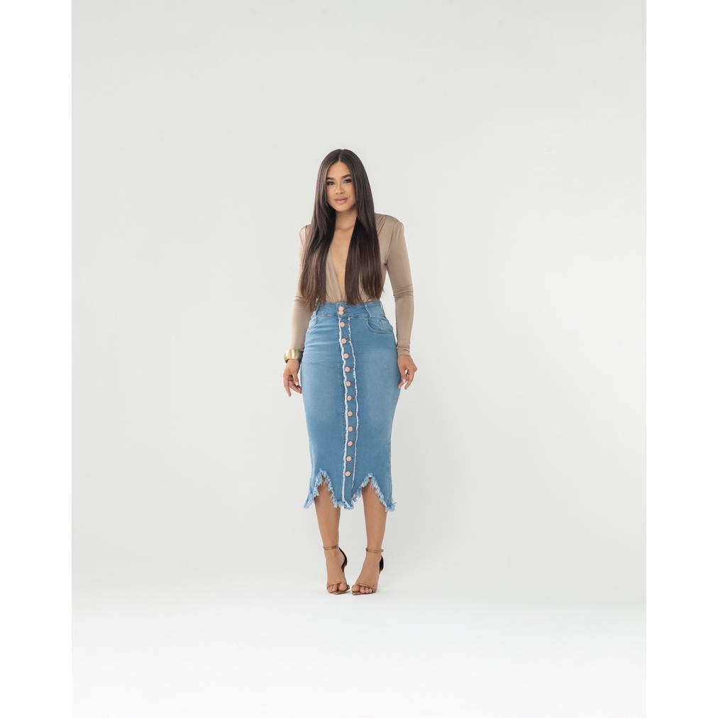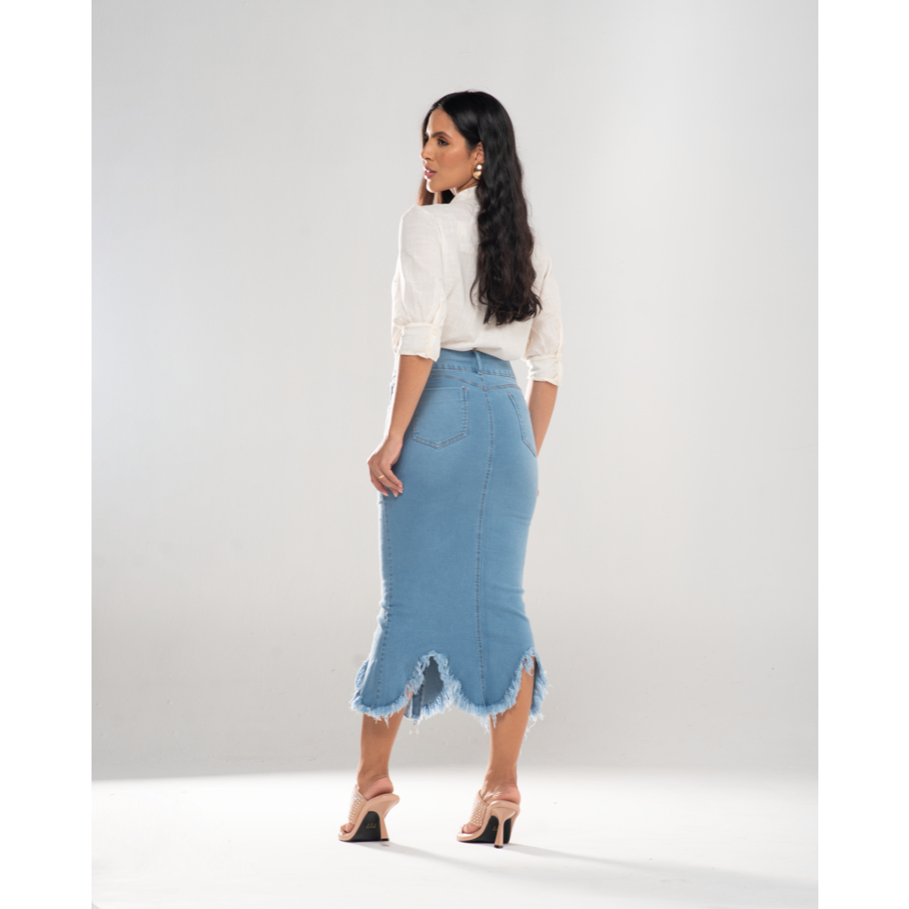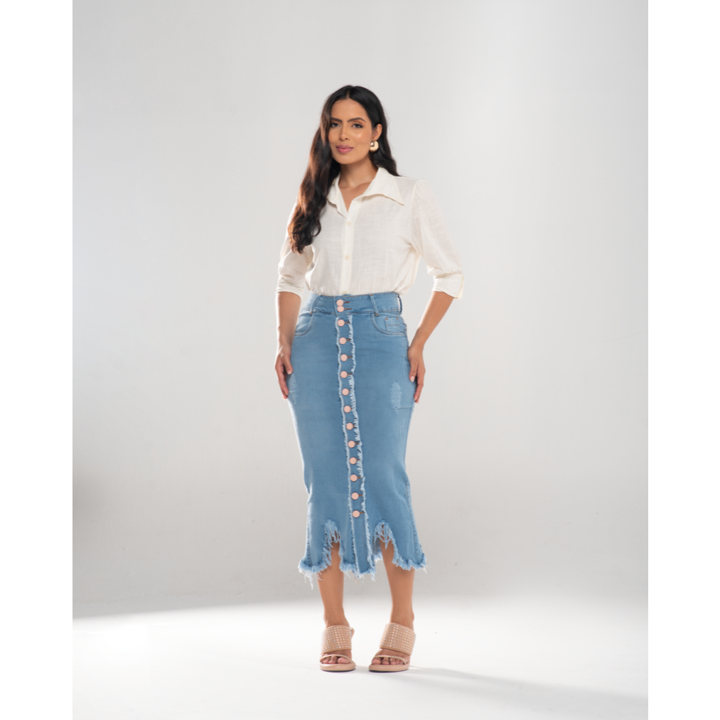 Saia Jeans Longuete Desfiada 7Pallas