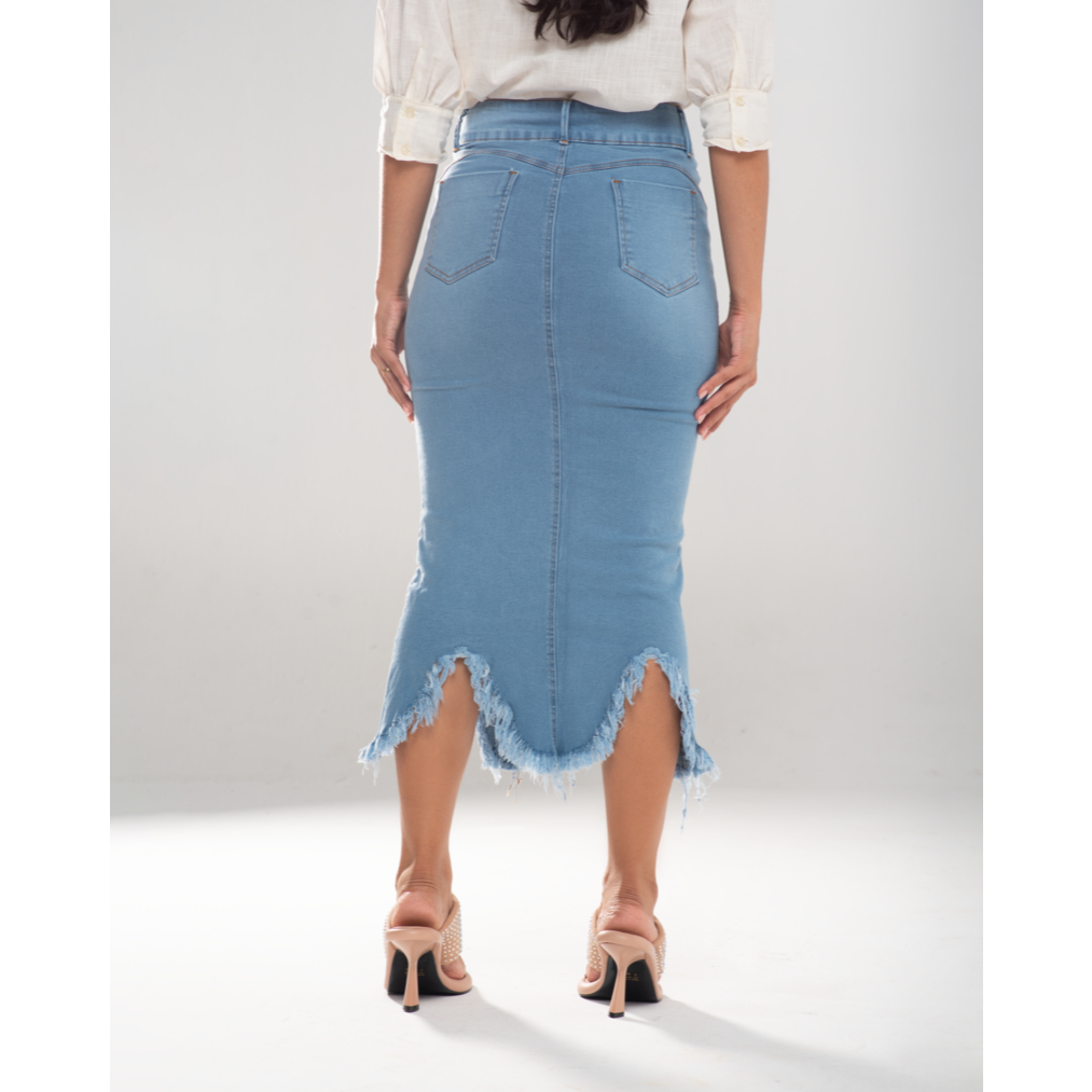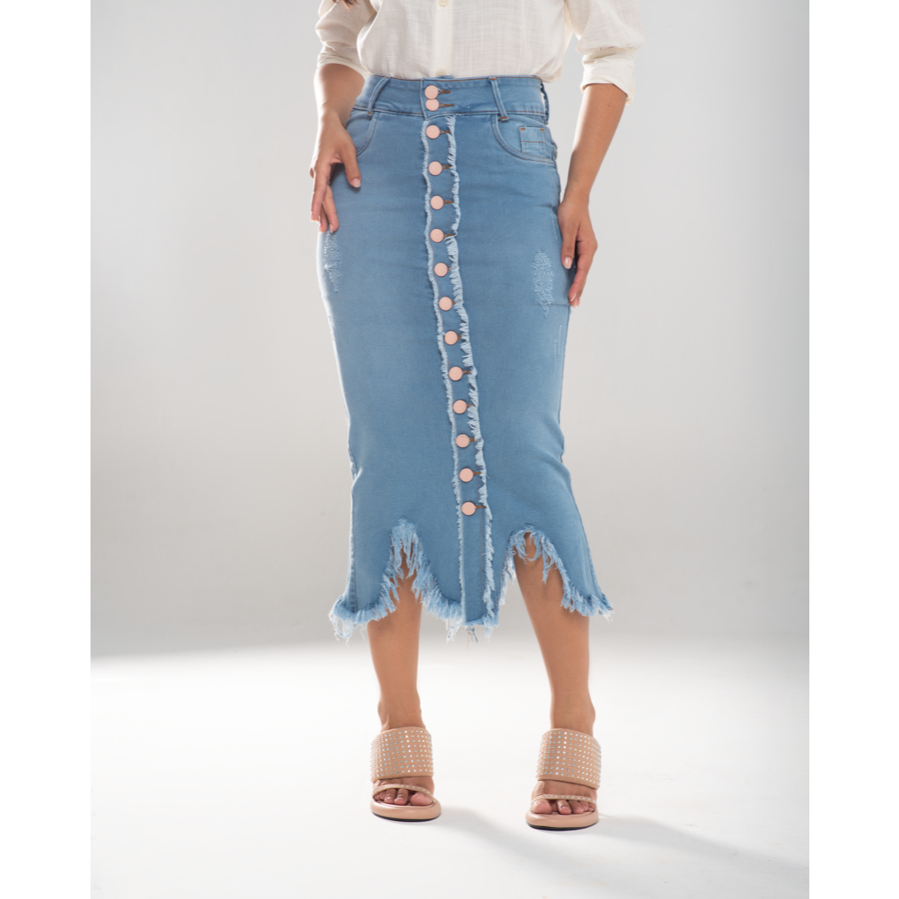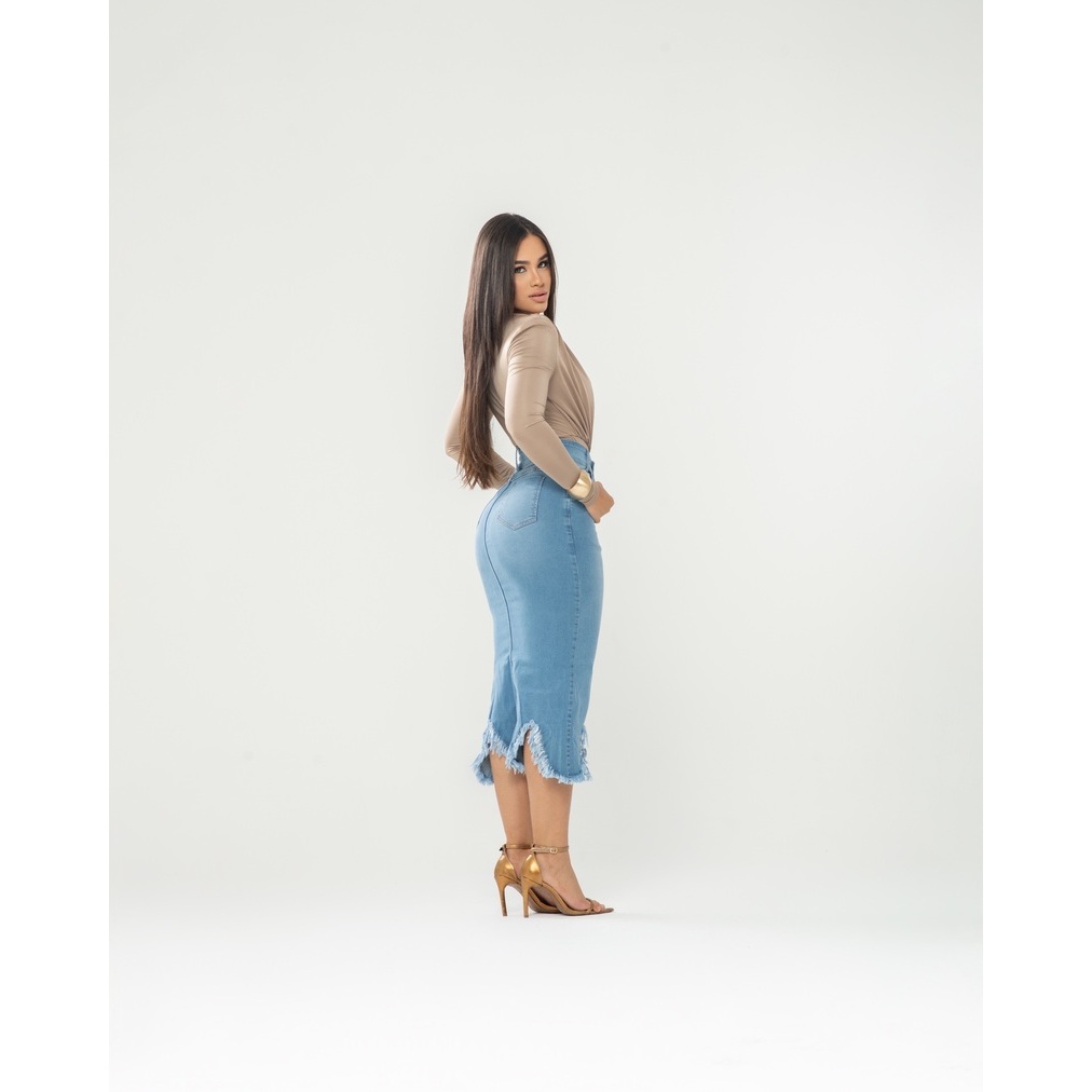 Saia Jeans Longuete Desfiada 7Pallas