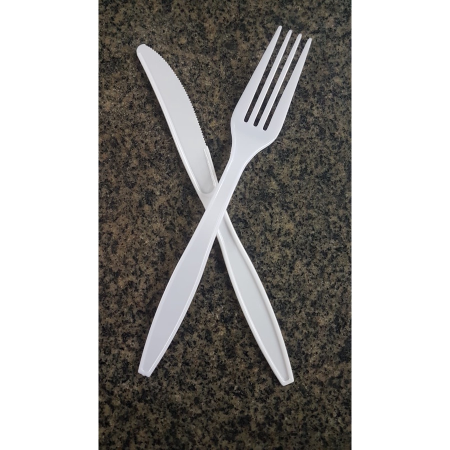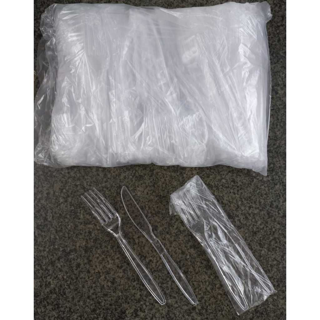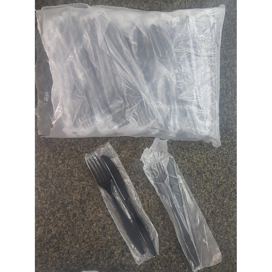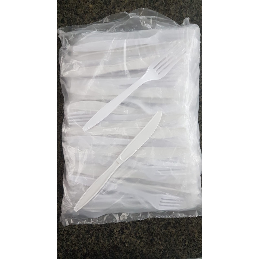 Kit garfo e faca descartável c/50 ou 200 kits - Embalados - Preto Cristal Branco - REFORÇADO